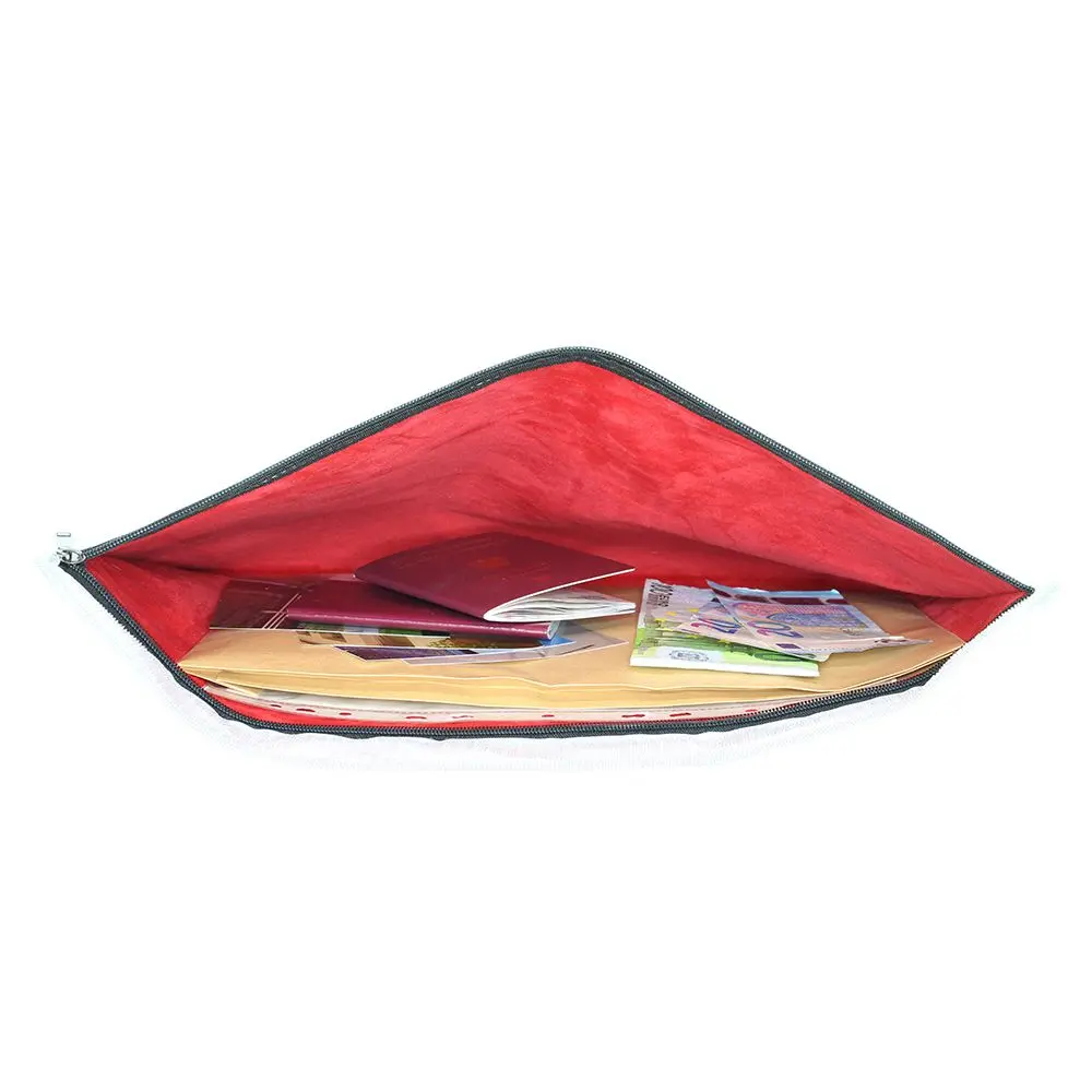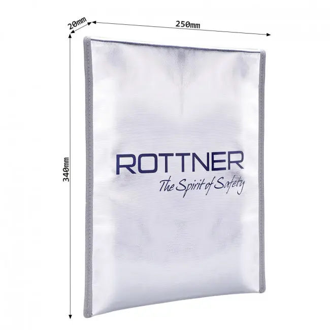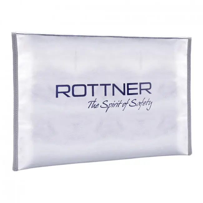 Огнеупорната чанта UNS е подходяща за документи формат A3, А4, малки вещи и пари. Изработена е от огнеупорен материал и по този начин предпазва вашите важни документи от щети, причинени от пожар, топлина и вода. Чантата се затваря с цип и велкро. От вътрешната страна чантата е облечена в червена кадифена материя. Може да бъде съхраняване във всеки сейф. Подходяща и като транспортна чанта за лаптоп или таблет.