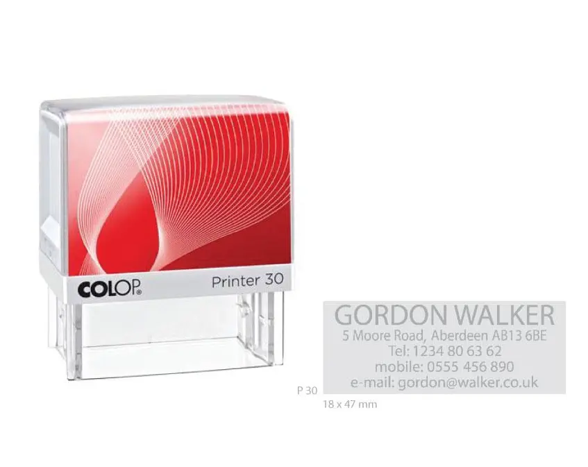 Механизмът Colop P30 е индивидуално изработено клише с данни на клиента. Colop е световен лидер в изработката на механизми за автоматични печати. Изключително качествена изработка, която гарантира дълъг експлоатационен период. Механизмът е произведен в Австрия.
