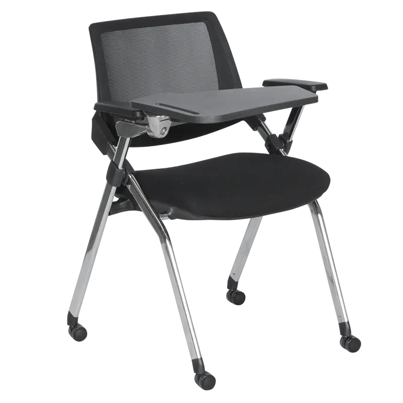 Посетителски стол АЛБА е с хромираната конструкция, гарантираща стабилност на всеки, който седне на него. Седалката е облечена в приятна на допир дамаска, а облегалката е изработена от висококачествена мрежа, която позволява циркулация на въздуха. Този посетителски стол има вградена подвижна маса, затова е подходящ за зали за събития, конференции, лекции и други.