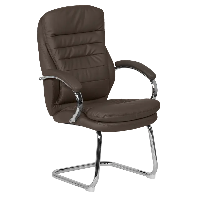 Посетителски стол ЛАЗАРИНА е стилен и комфортен офис стол. Изработен е от ефектна комбинация от еко кожа и хром.