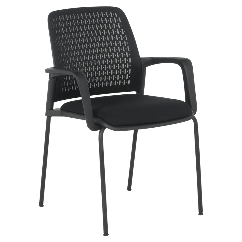 лимбоПосетителски стол НИВАРО е стилен и надежден избор за всяко офис пространство. Моделът разполага с праховоядисана метална основа, тапицирана седалка и вентилирана облегалка, подсилена с полипропилен. Фиксираните подлакътници допринасят за допълнителен комфорт, а възможността за стифиране осигурява лесно съхранение и спестяване на място.