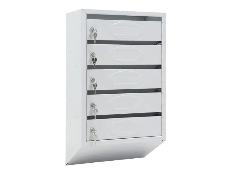 Пощенска кутия PMT PB 5C KL е с 5 клетки с идндивидуално заключване. Вскяка клетка има приспособено място за табелка. Лесно монтиране на стена.