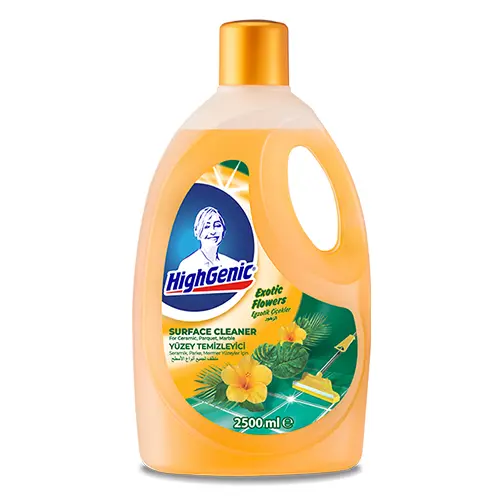 Препаратът HighGenic Exotic flowers 2.5 л е предназначен за почистване на различни видове настилки и повърхности, като успешно се бори с миризми и зацапвания. Продуктът осигурява ефективно почистване на големи площи като подове, повърхности от мозайка, теракота, стени, фаянс и други. HighGenic не оставя следи, премахва неприятните миризми и има свеж приятен аромат на екзотични цветя.