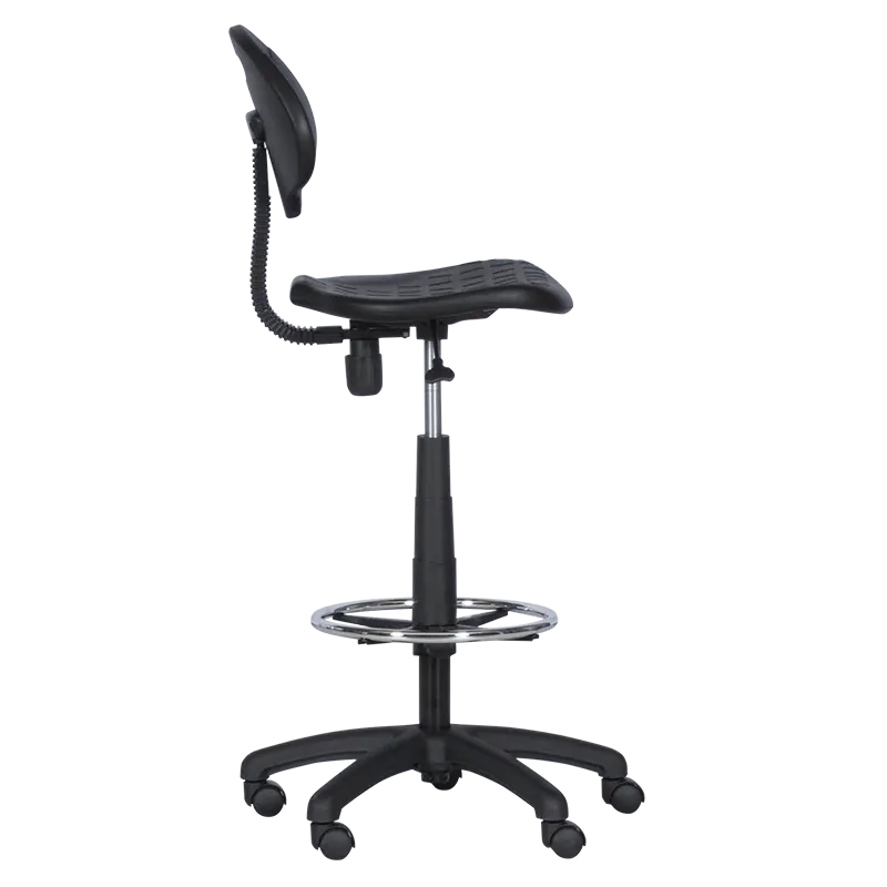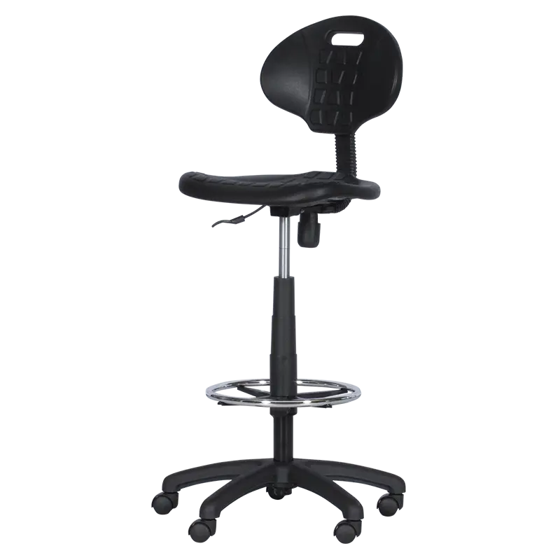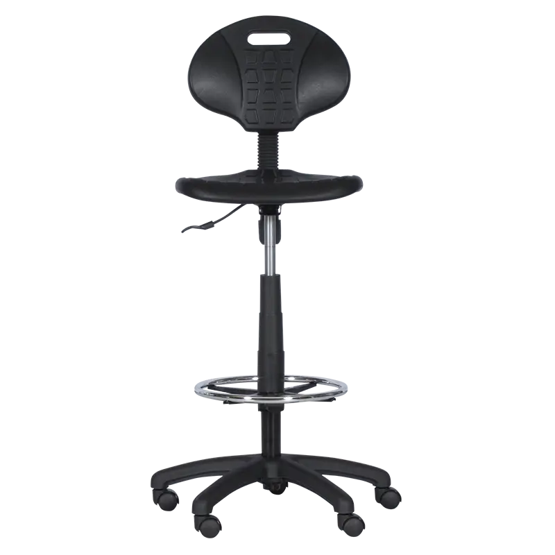 Работен стол ДЕАН е удобен работен офис стол с изчистен дизайн, изработен от полиуретанова пяна. Той разполага с функция за коригиране на височината и стъпенка за краката.