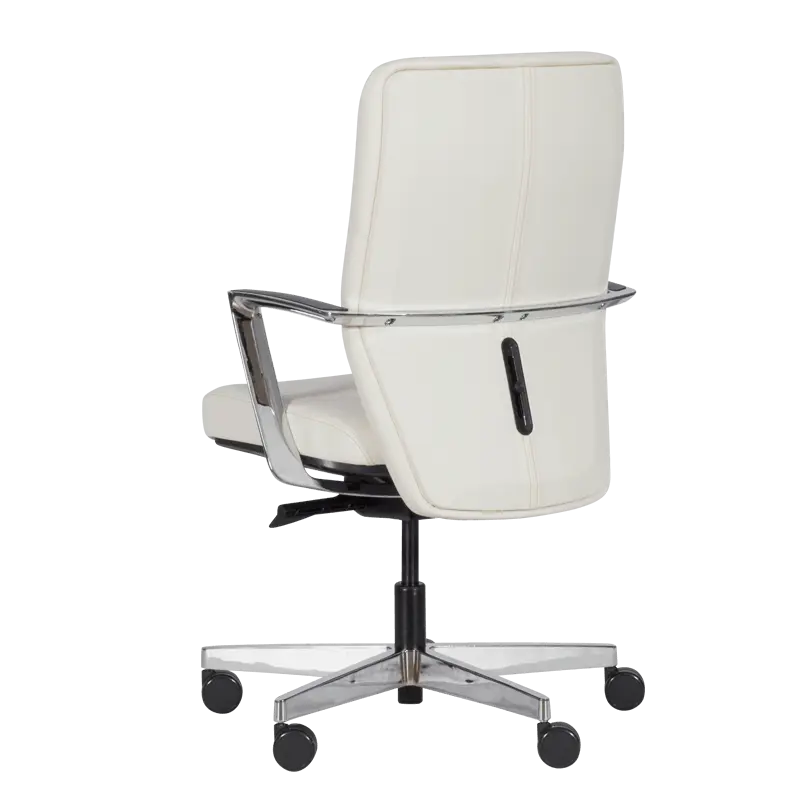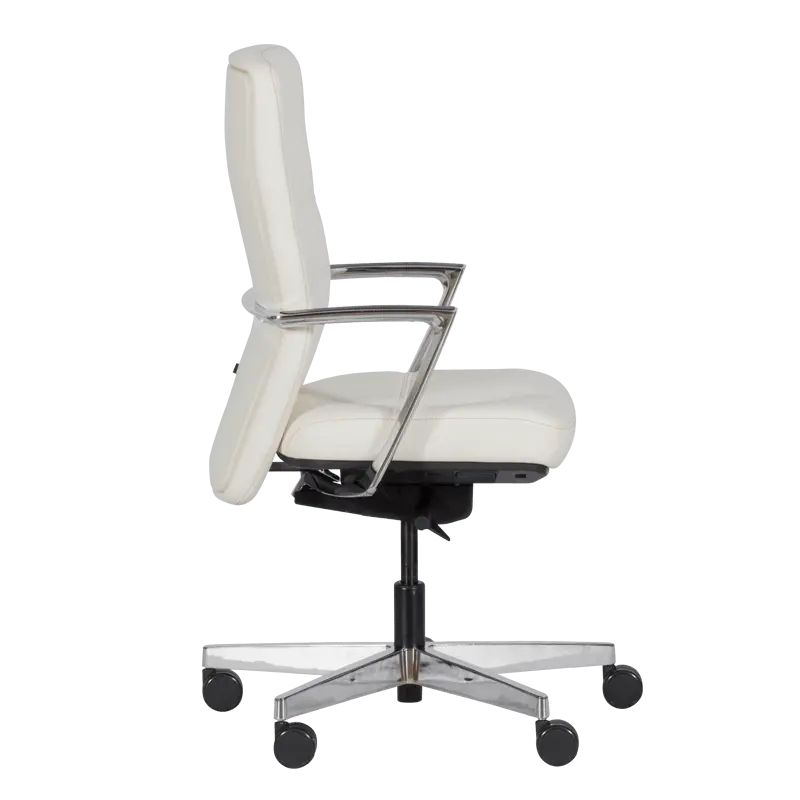 Работен стол СЕМЕЛА е ергономичен офис стол със стилна визия и голям брой функции за максимално удобство. Моделът е с люлеещ механизъм и възможност за заключване в позиция под наклон, а седалката му може да се регулира както по височина, така и по дълбочина. Столът е изработен от висококачествена естествена кожа и алуминиева основа със силиконови колелца.
