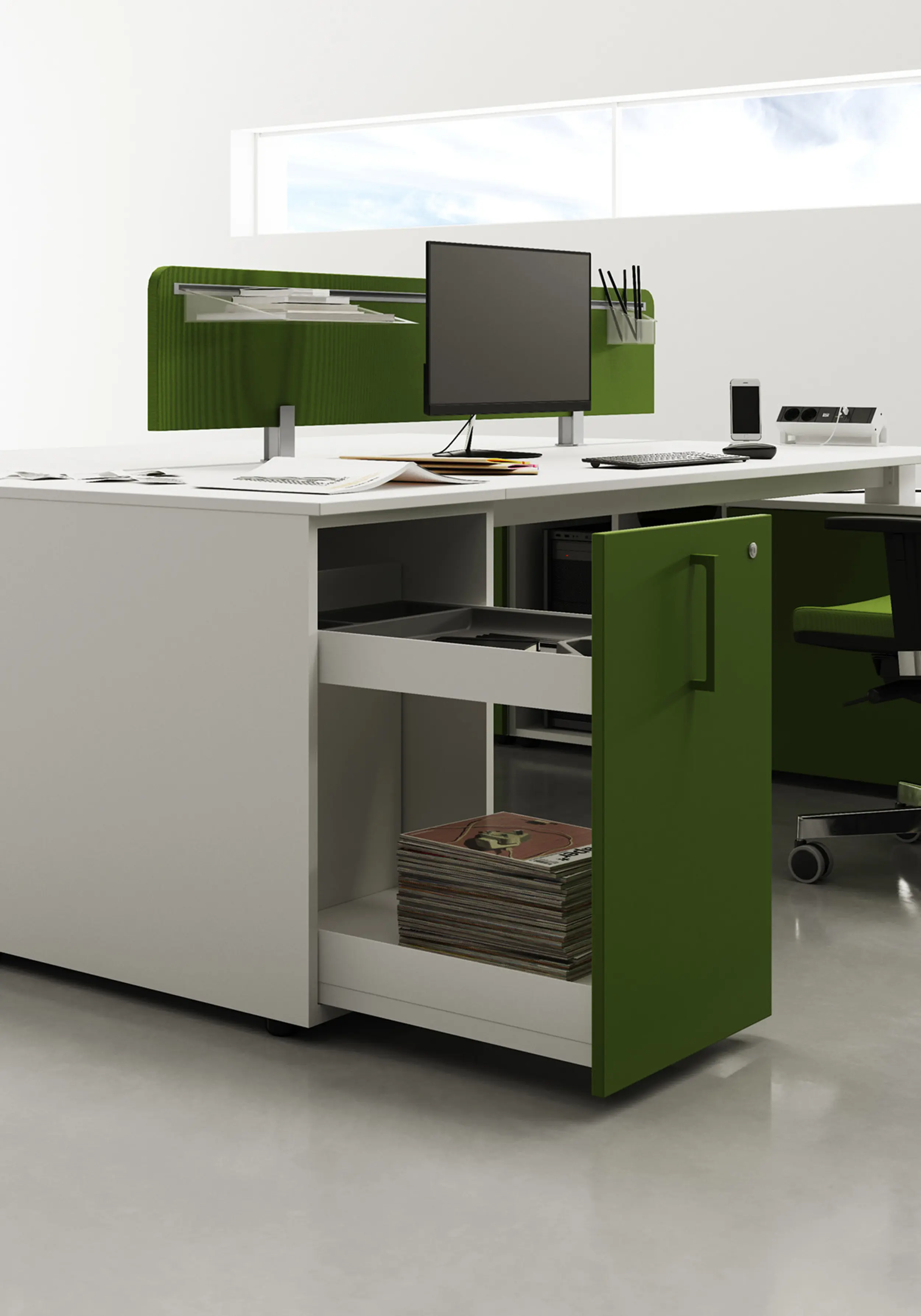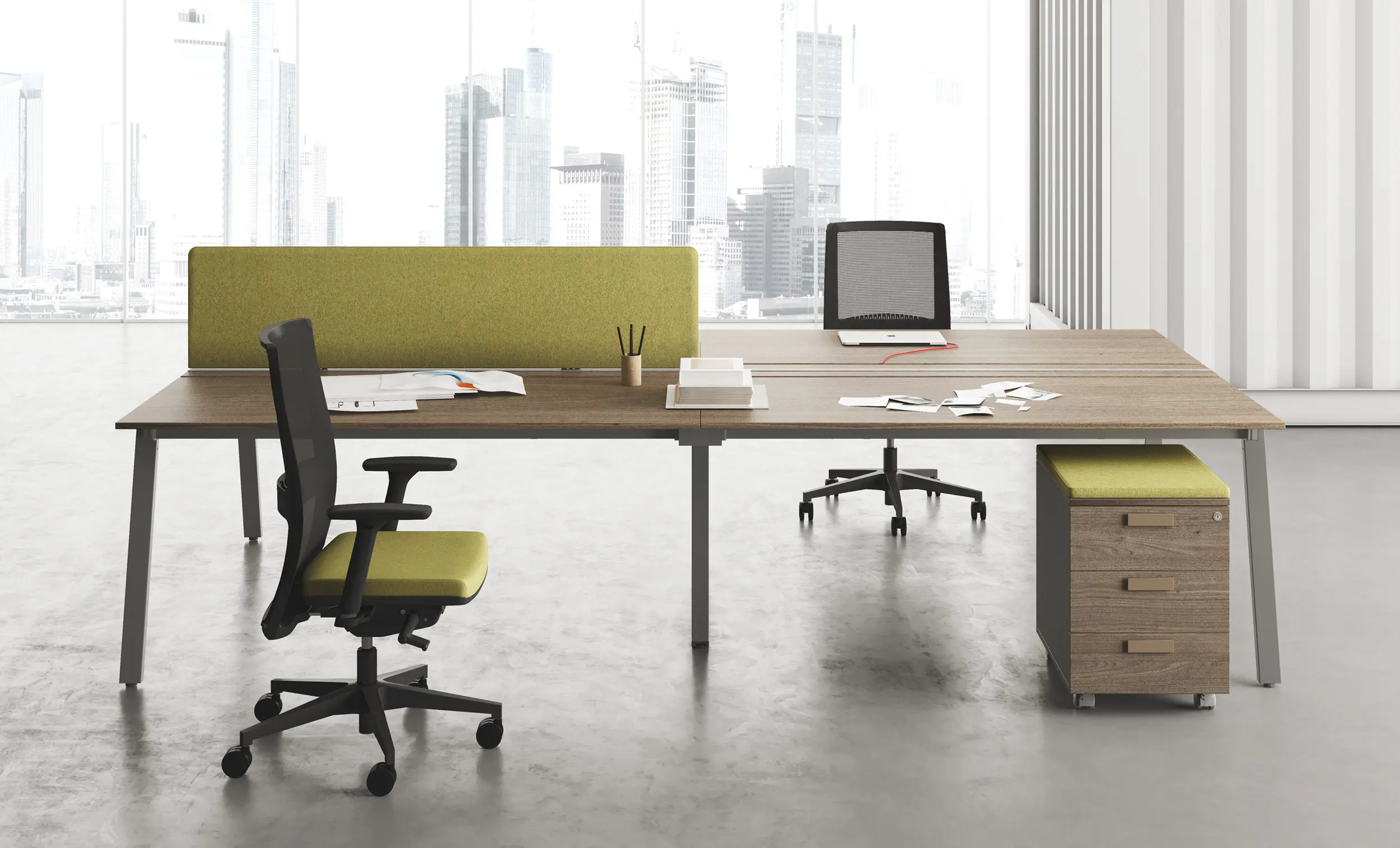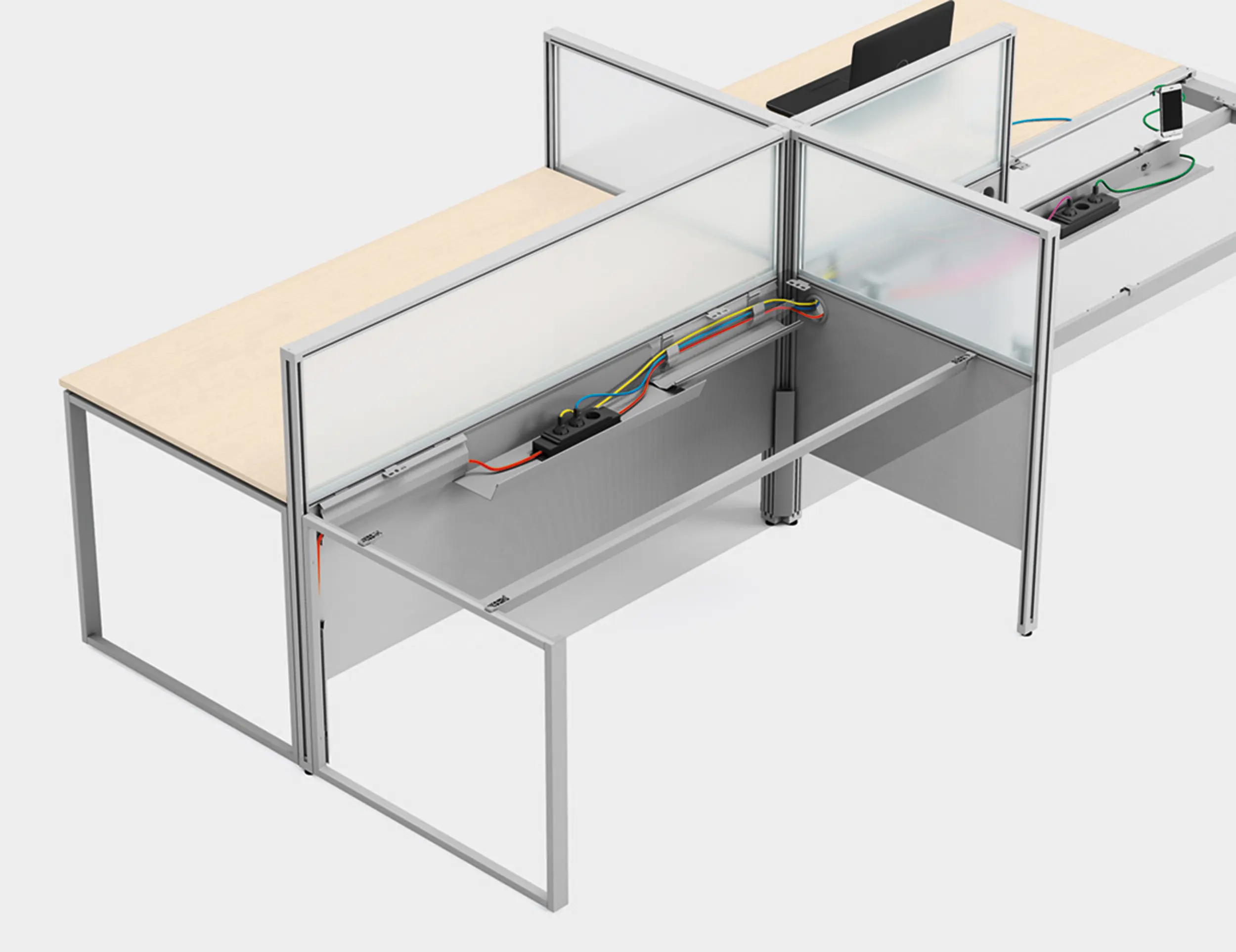 Серията 5th Elemen предоставя възможност за конфигуриране на 2, 3, 4 или 6 работни места, с опция за създаване на модерна и комфортна работна среда. Всички работни места са снабдени с кабелни канали за предпазване на електрическите проводници от механични повреди. Плотовете с плъзгащ механизъм са отлично решение за организиране на функционална и комфортна работна среда. Всеки от тях може да се премества отделно, в зависимост от характеристиките на офис пространството и предпочитанията на служителите.