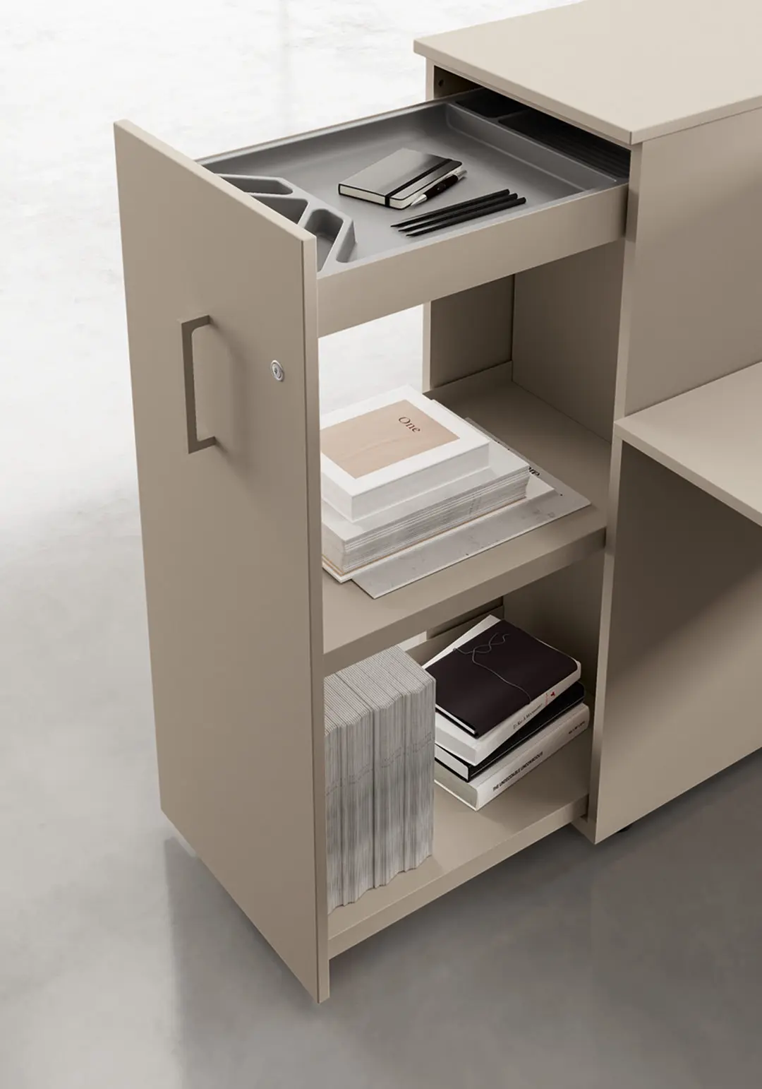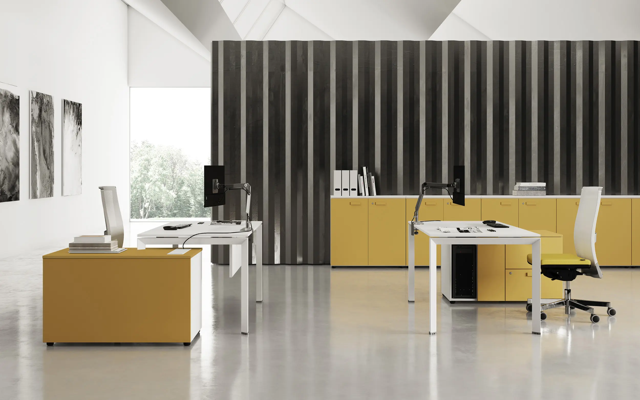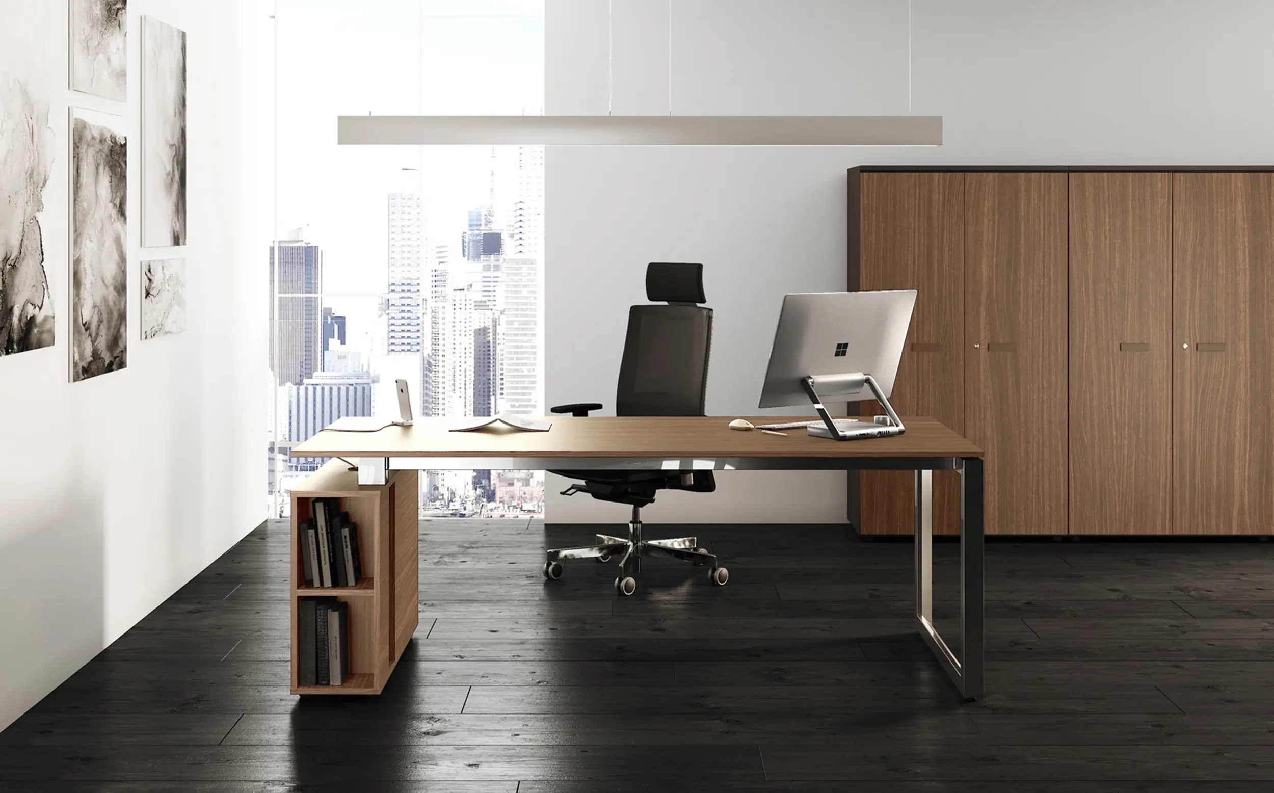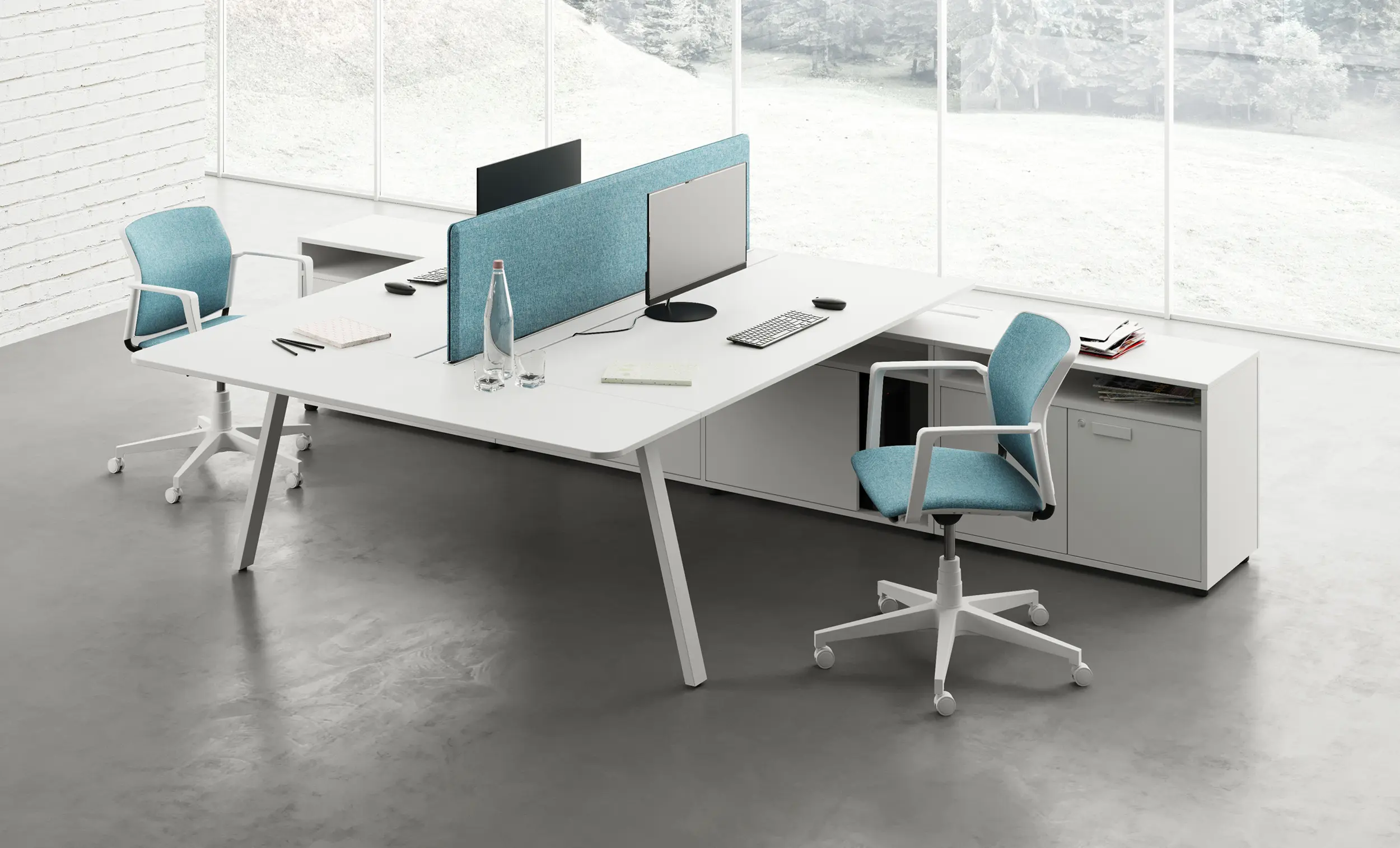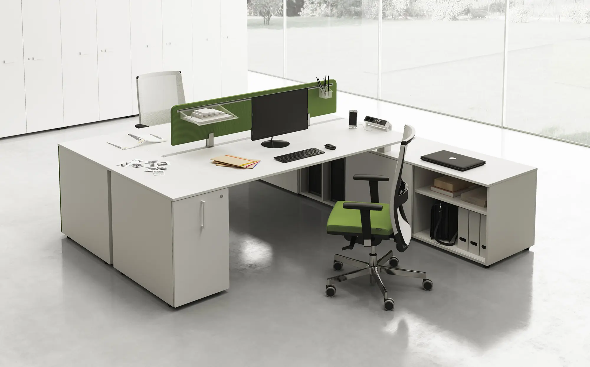 Работна станция от серия FIFTH ELEMENT на италианската марка LAS са невероятна възможност за създаване на перфектен офис. Серията е придобила широка популярност благодарение на големия избор от модули от всякакъв размер. Te успяват да се адаптират безпроблемно към нуждите на всяка работна среда и я превръщат в цялостно обзавеждане за всяко офис помещение. Големият избор от модули позволява оборудване на работни зони тип Open Space според нуждите на всеки отделен служител. Изчистените линии, гладките повърхности и модерния дизайн допринасят за превръщането на всяка офис зона в идеално място за работа.