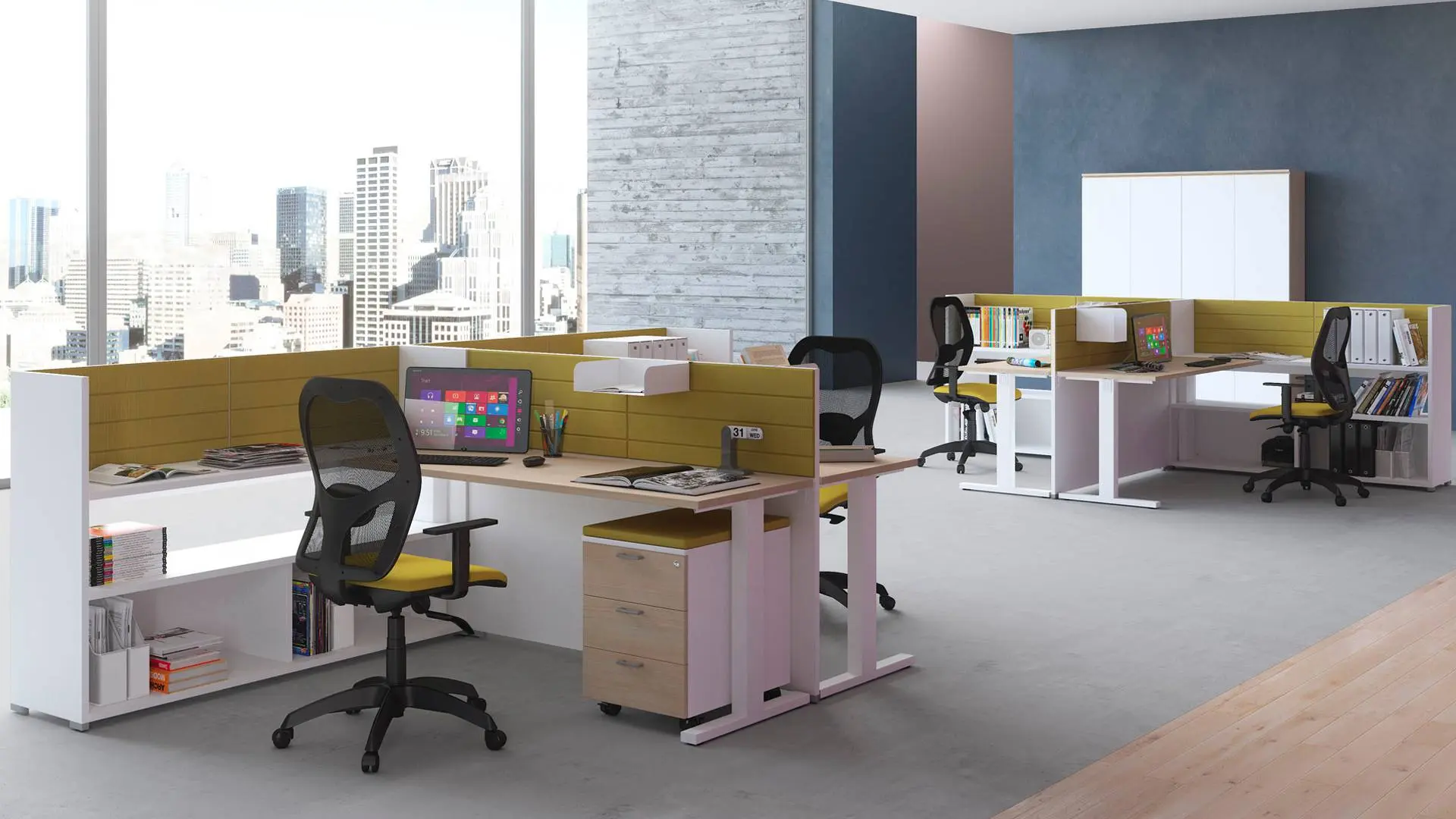 Иновативната система Bench на OXI_TREND позволява да се организира работното пространство по екипи, съобразно спецификата на работната среда: работа в екип или индивидуални дейности. Bench системата се състои от различни модули, които поддържат един или повече работни плотове. Работната среда е разделена с шумоизолиращи панели, давайки възможност на служителите не само да работят свободно, но и максимално да усвоят работното пространство. Към панелите могат да се прикрепят различни аксесоари (стойки за телефони, канцеларски материали, тави за хартия и др.).