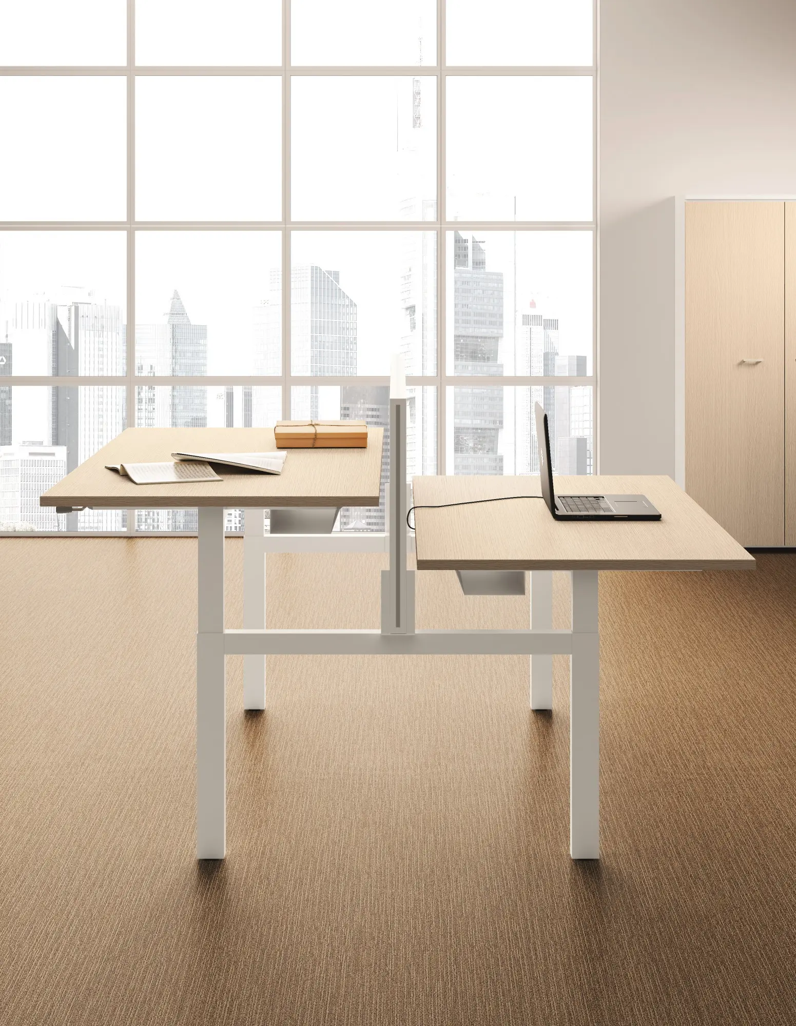 Работна станция UP е част от серията елегантни и бизнес ориентирани работни маси и бюра с регулируема височина. Благодарение на функцията му за регулиране на височината, чрез електрическа клавиатура или метална дръжка, ще може да работите както от седнало, така и от изправено положение. UP ще ви доближи до вашите идеи и творения, за да ви гарантира, контрол върху всички ваши проекти.