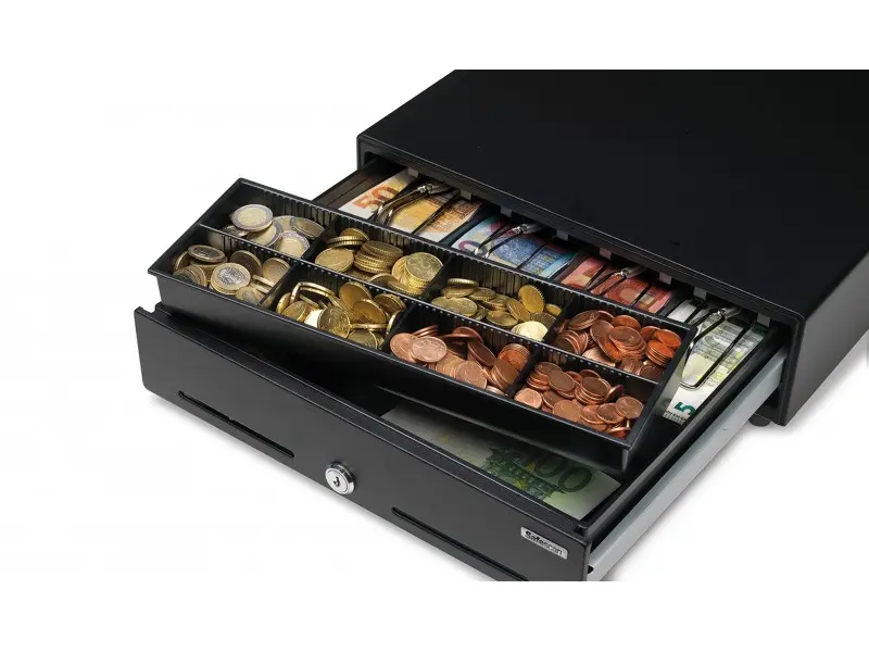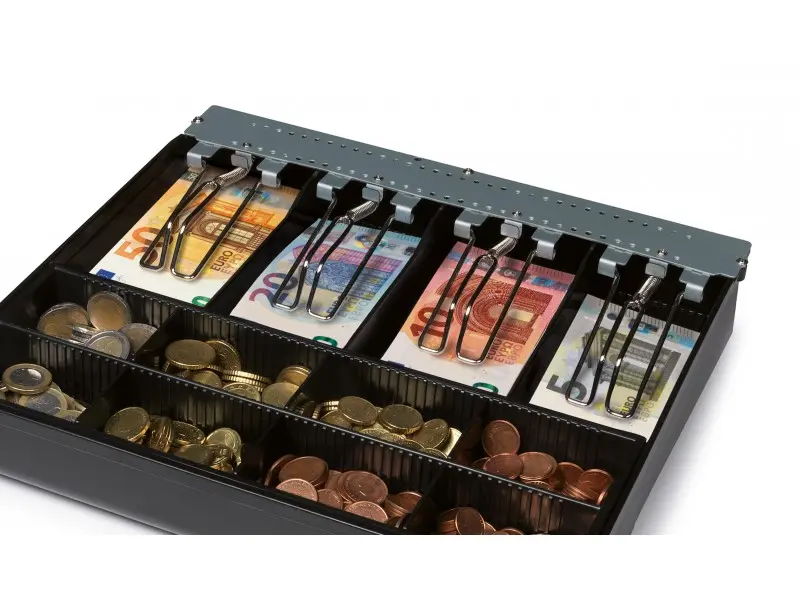 Safescan 3540T е отделна поставка за пари, която представлява отлично допълнение към касите-чекмедже Safescan. Разделителят 3540T разполага с поставка с раздели за монети, която може да бъде изваждана лесно и може да бъде подреждана според предпочитанията. Идеален за бърза смяна на при работа на смени или за подмяна на ролката за касови бележки. Побира 8 вида монети и 4 типа банкноти.