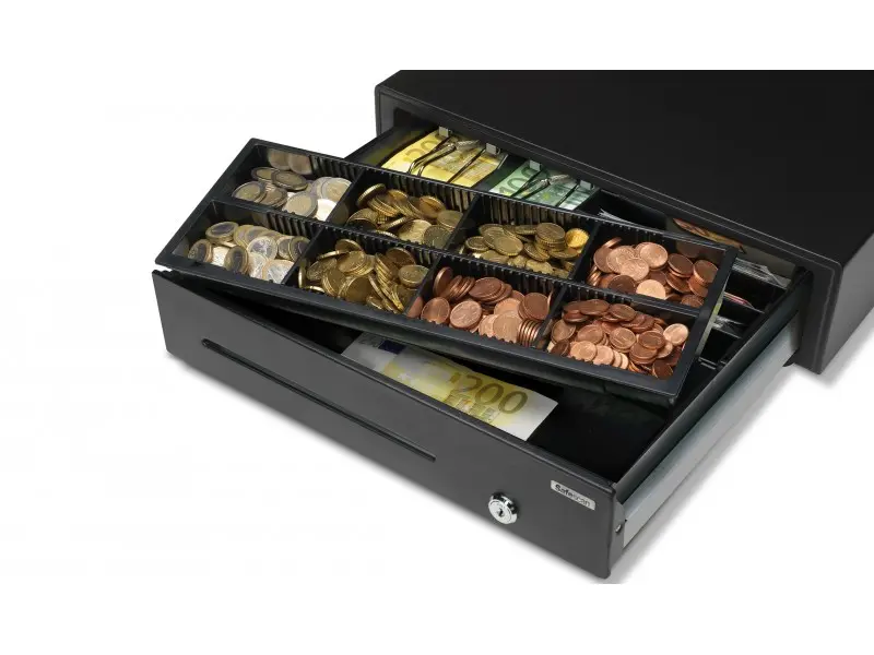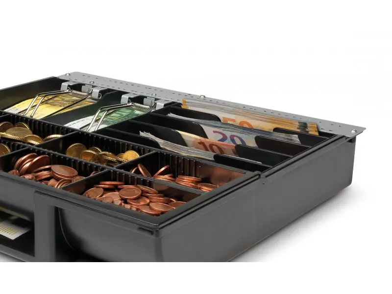 Safescan 4141T2 е отделна поставка за пари, която представлява отлично допълнение към касите-чекмедже Safescan. Разделителят 4141T2 разполага с поставка с раздели за монети, която може да бъде изваждана лесно и може да бъде подреждана според предпочитанията. Идеален за бърза смяна на при работа на смени или за подмяна на ролката за касови бележки. Побира 8 вида монети и 6 типа банкноти.