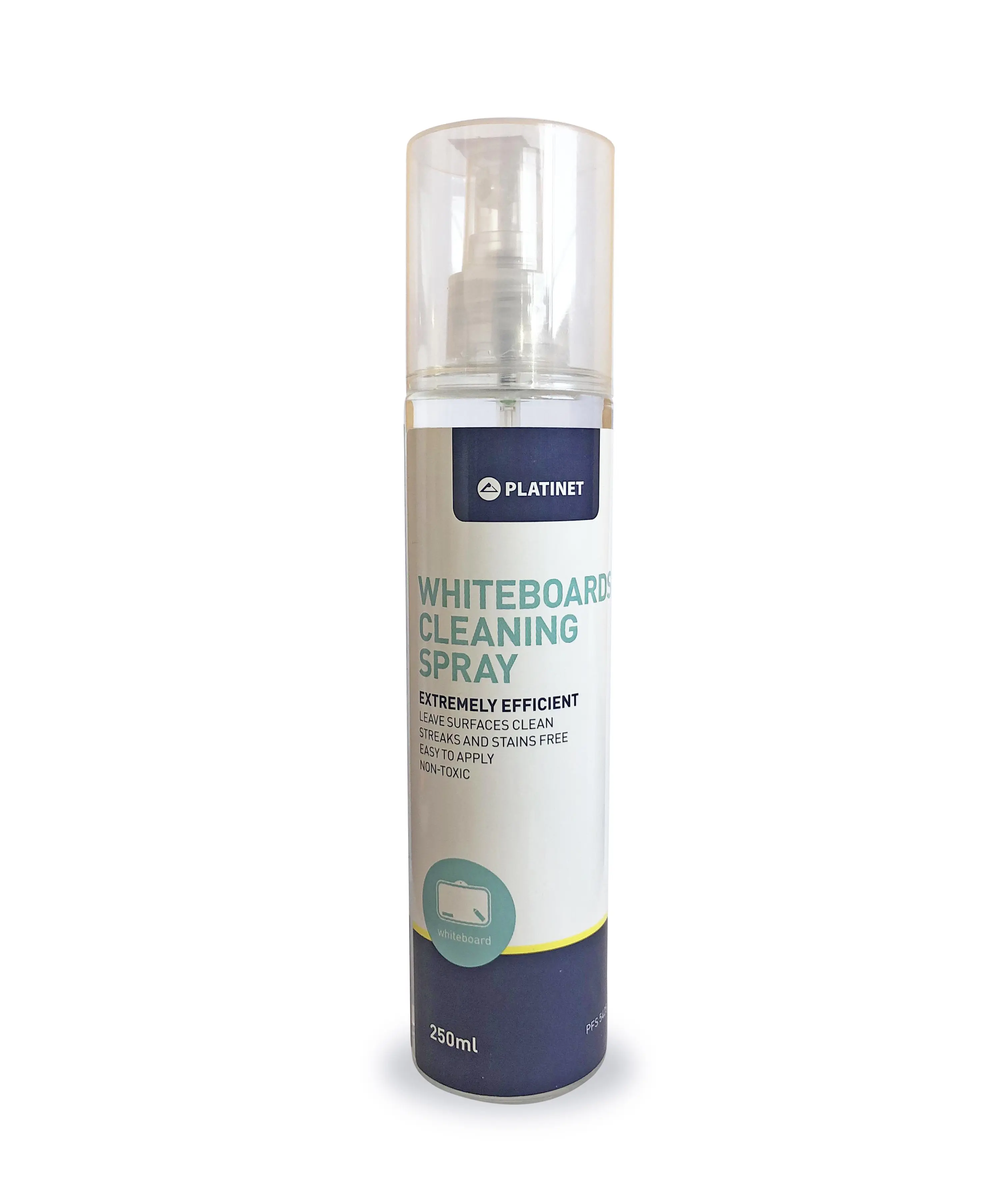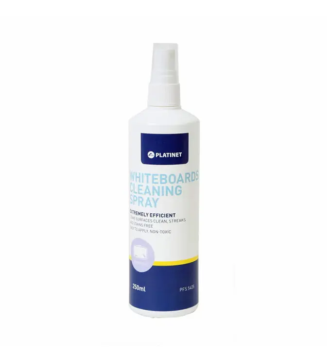 Спреят за бяла дъска 250 мл е подходящ за бързо и безпроблемно почистване повърхността на бели дъски. Специално разработен за училища, колежи и университети. Просто напръскайте и забършете повърхността с кърпа без влакна и след това полирайте със суха кърпа. Подходящ за всички маркери за бяла дъска и писалки с филц.