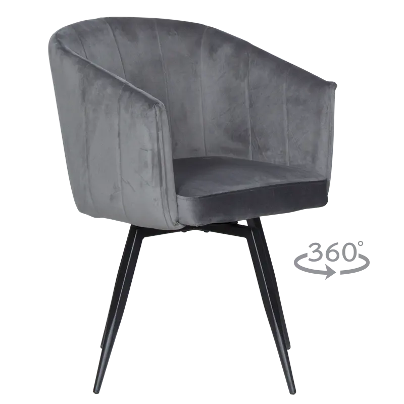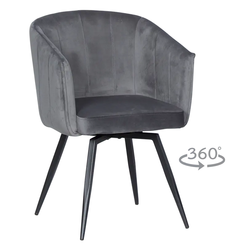 Трапезен стол ДИМА е подходящо решение за обзавеждането на дома или за интериора на модерни заведения. Седалката му е изработена от устойчива и лесна за поддръжка дамаска, а основата от праховобоядисан метал. За максимален комфорт моделът разполага с функция за завъртане на 360 °.