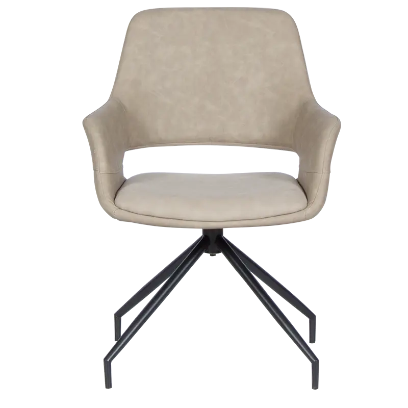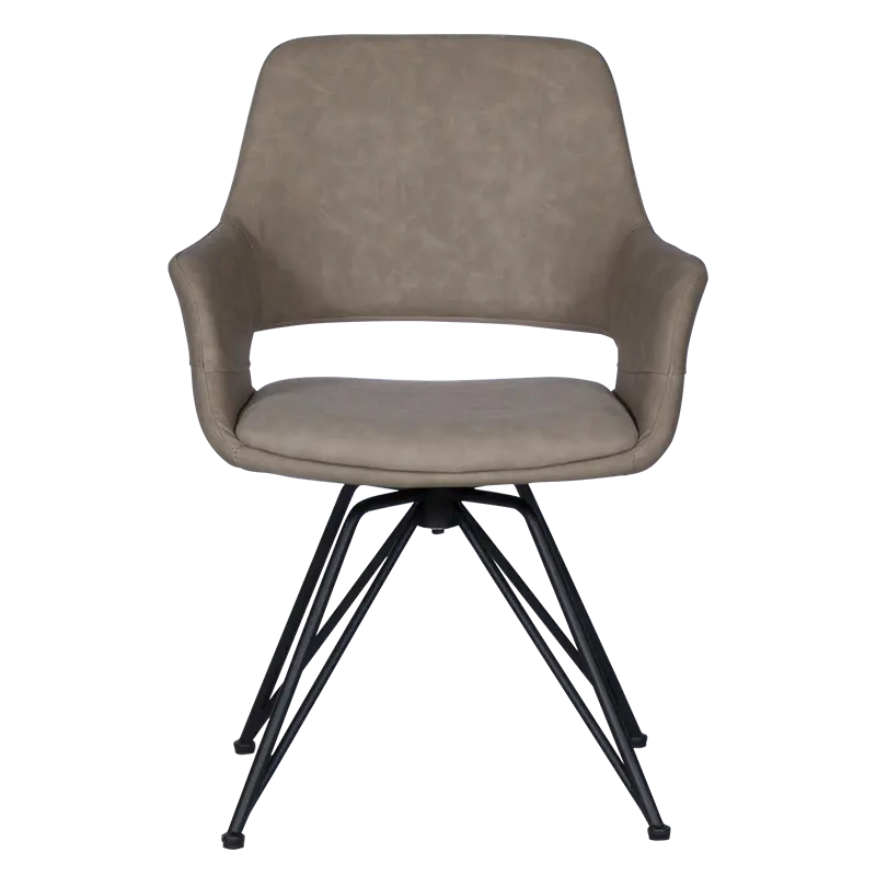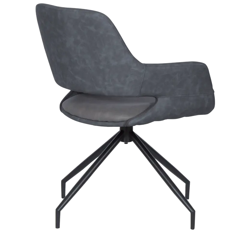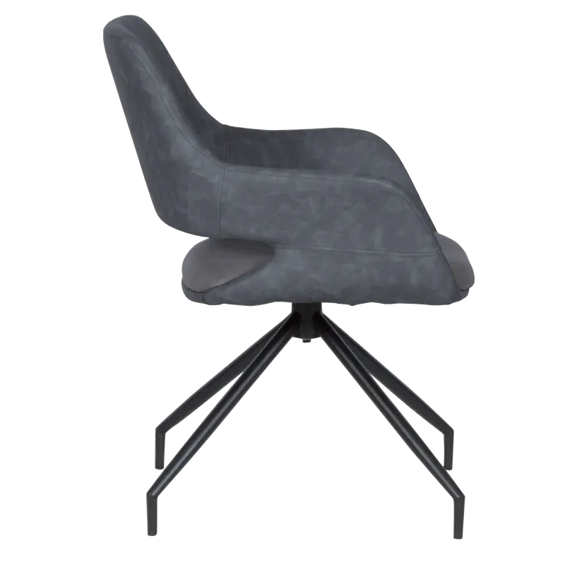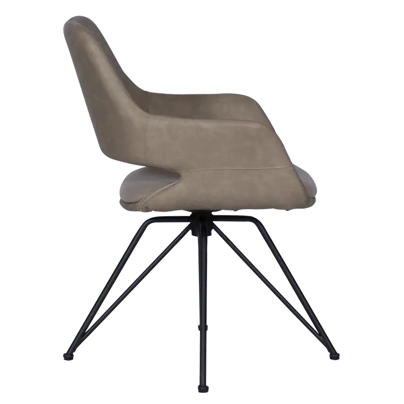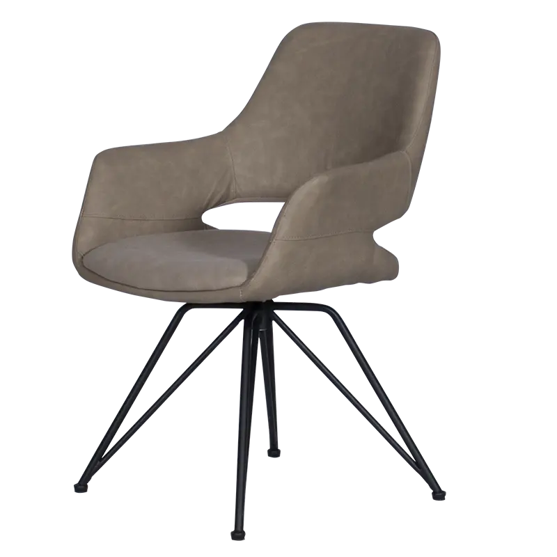 РАДЕЛИНА е трапезен стол с модерен дизайн, нестандартни крака и функция за въртене на седалката на 360°. Изработен е от висококачествена дамаска и праховобоядисан метал.
