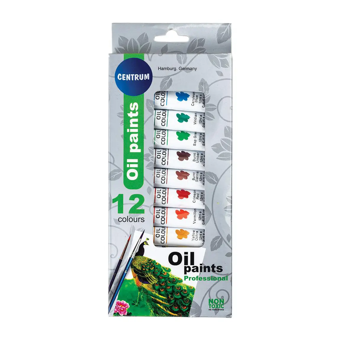 Висококачествени ученически темперни бои Centrum маслени в метални тубички комплект от 12 цвята в картонена кутия.