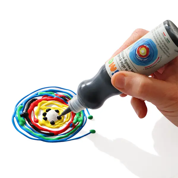 Нов начин за рисуване! Използвайте бутилката директно, за да рисувате в 3D, като внимателно дозирате всеки цвят върху хартиения лист. Експериментирайте, пишете и рисувайте със специални ефекти. Ще се почувствате като съвременен художник.