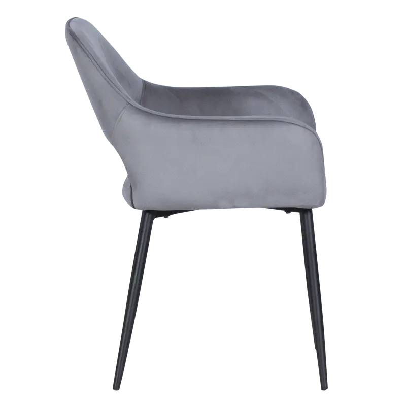 ДЕМИРА e удобен трапезен стол с модерна и елегантна визия. Той е изработен от луксозна, нежна дамаска и здрави крака от праховобоядисан метал.
