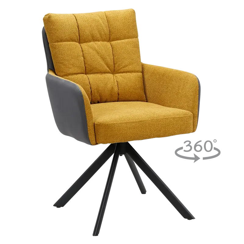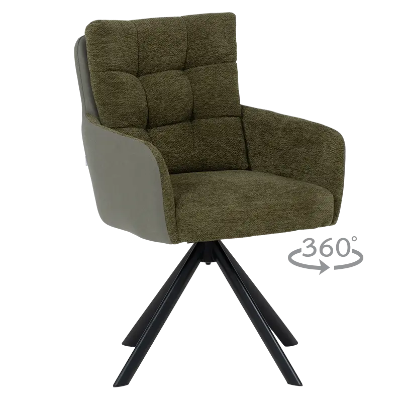 ЕВА е трапезен стол от ново поколение, с функция за въртене на седалката на 360°. Той е модерен, стилен и удобен. За изработката му е използвана дамаска и праховобоядисан метал за краката.