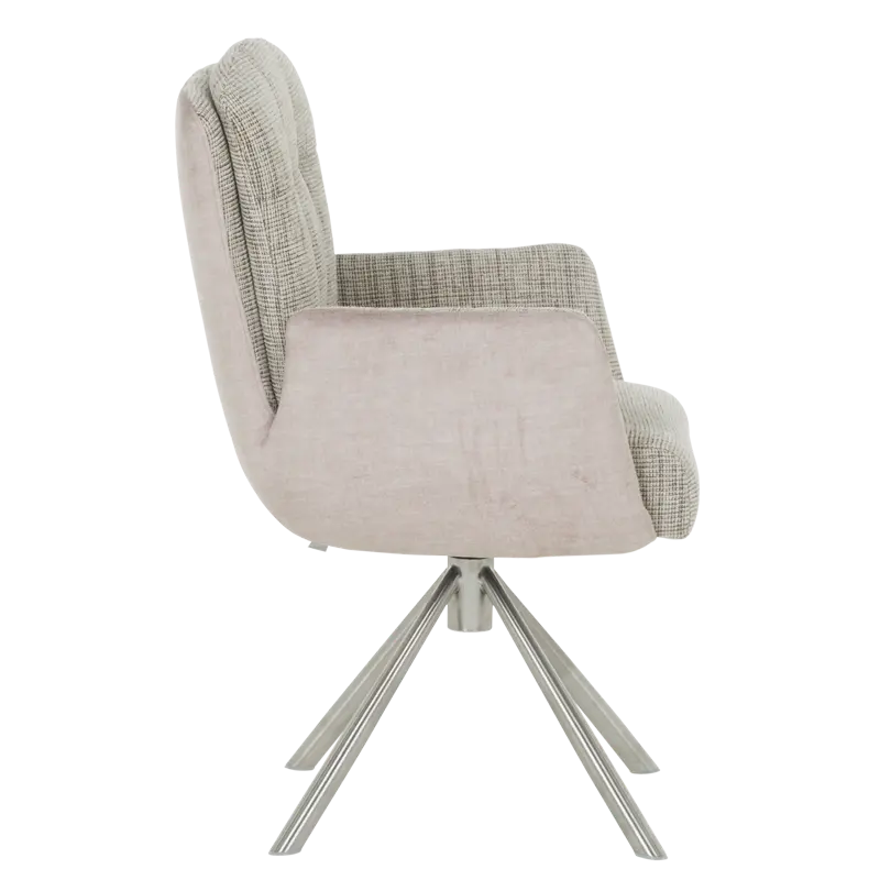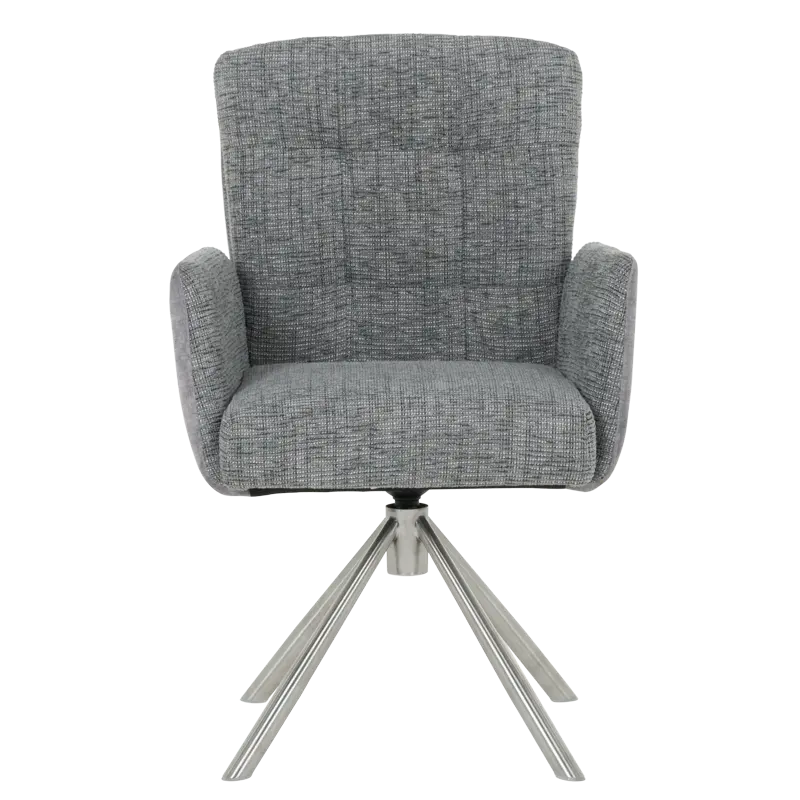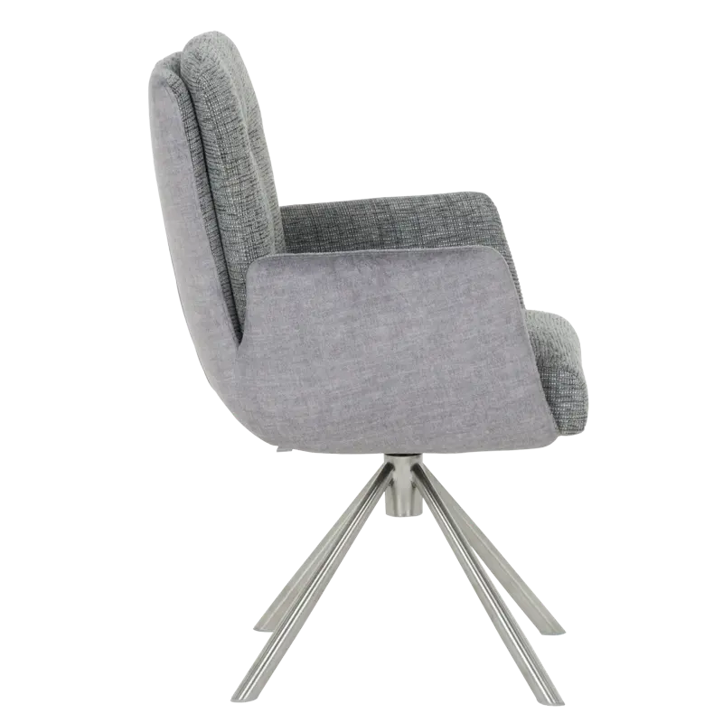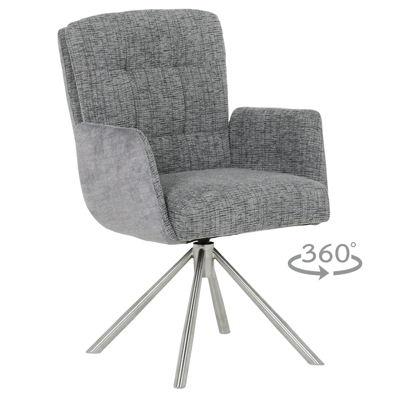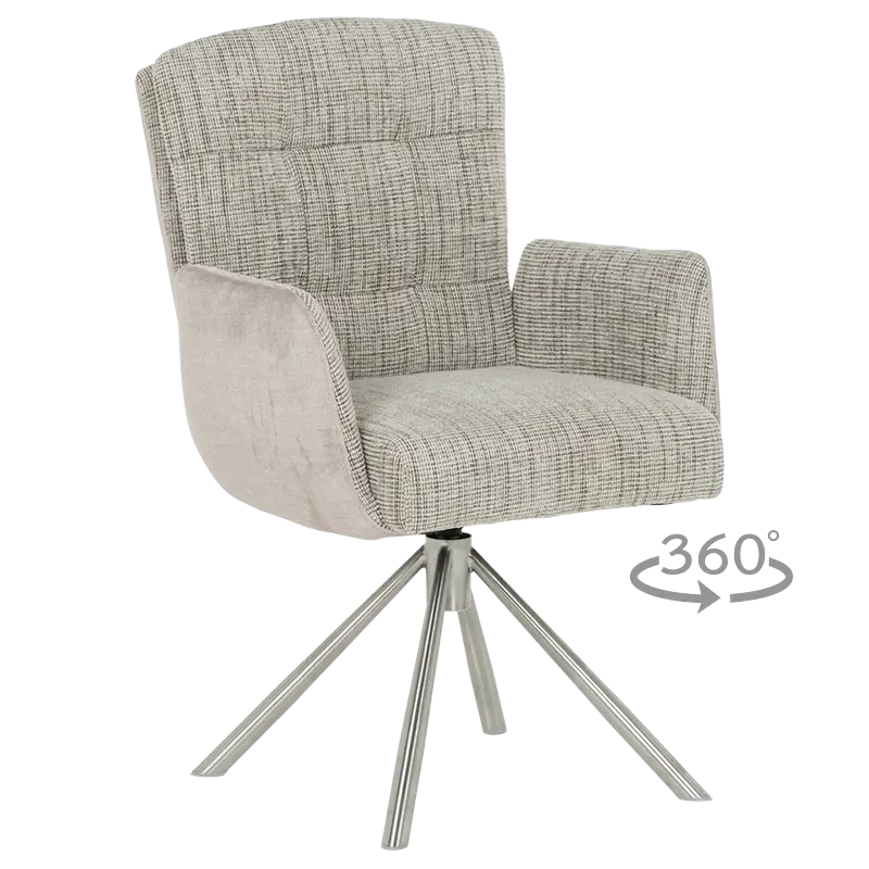 Трапезният стол КЕЙЛА предлага перфектен баланс между модерен дизайн и изключителна функционалност. Седалката, тапицирана с висококачествена дамаска и оборудвана с покет пружини, осигурява ненадминат комфорт, а подлакътниците допълват усещането за уют. Релакс облегалката с накланяне назад е ключова функция, която осигурява допълнително удобство за почивка и релаксация. Масивната основа от праховобоядисан метал с перлен блясък не само придава елегантен външен вид, но и гарантира стабилност. КЕЙЛА е проектиран да издържа до 120 кг, което го прави здрав и надежден избор за всяка модерна трапезария, съчетавайки комфорт и стил.