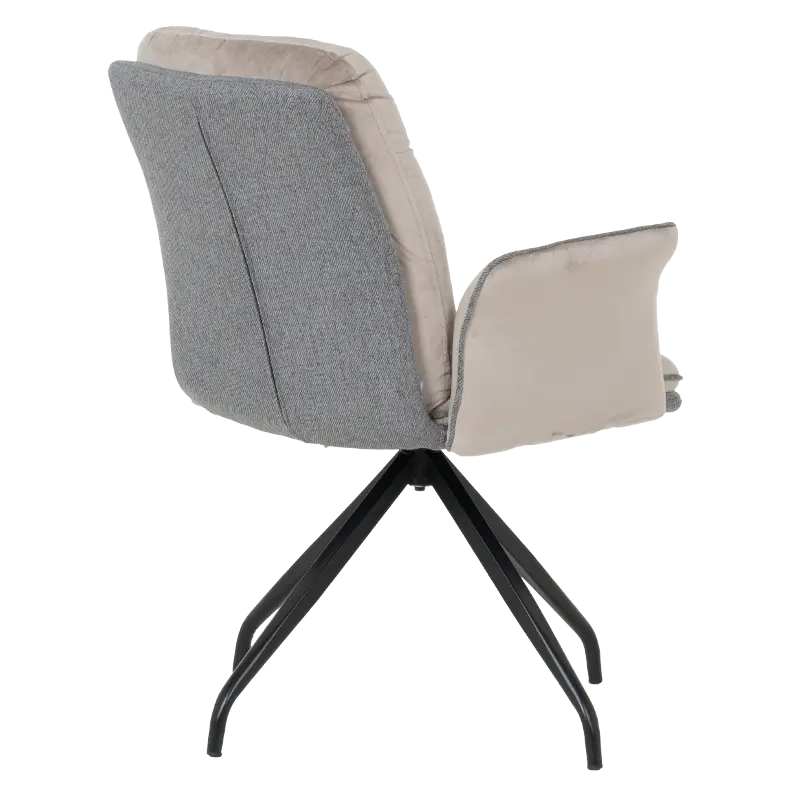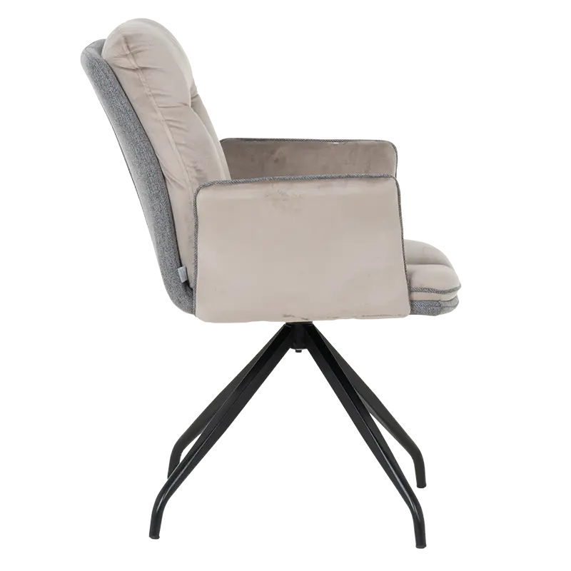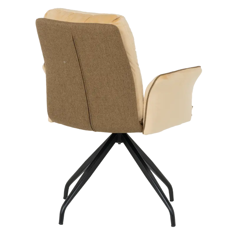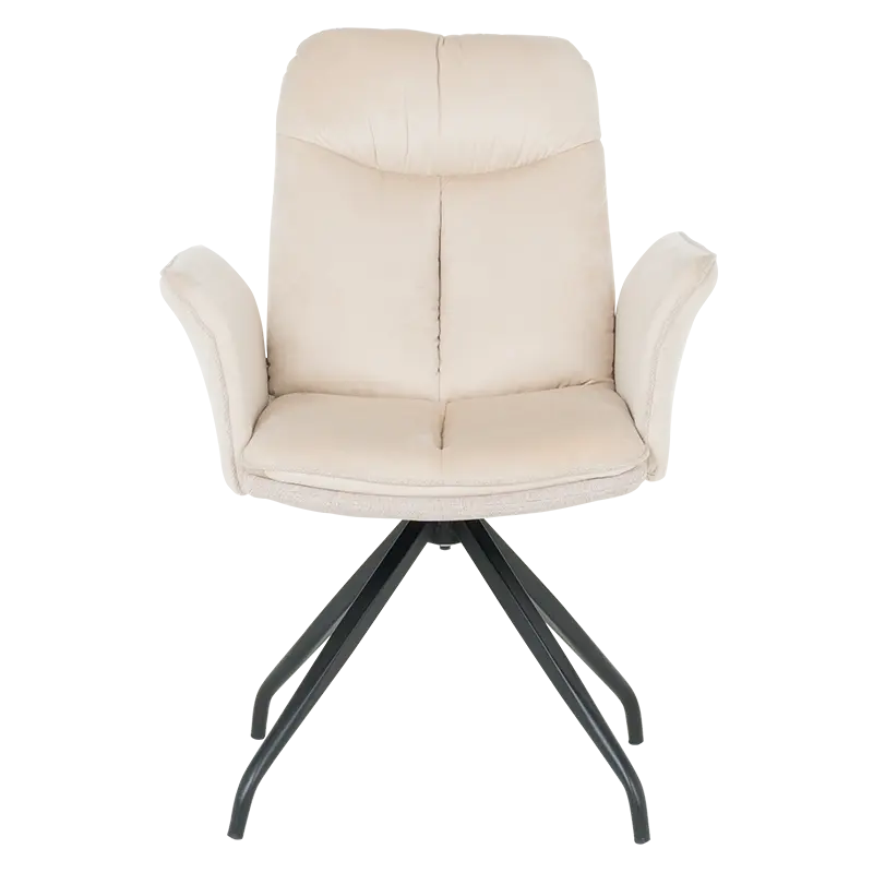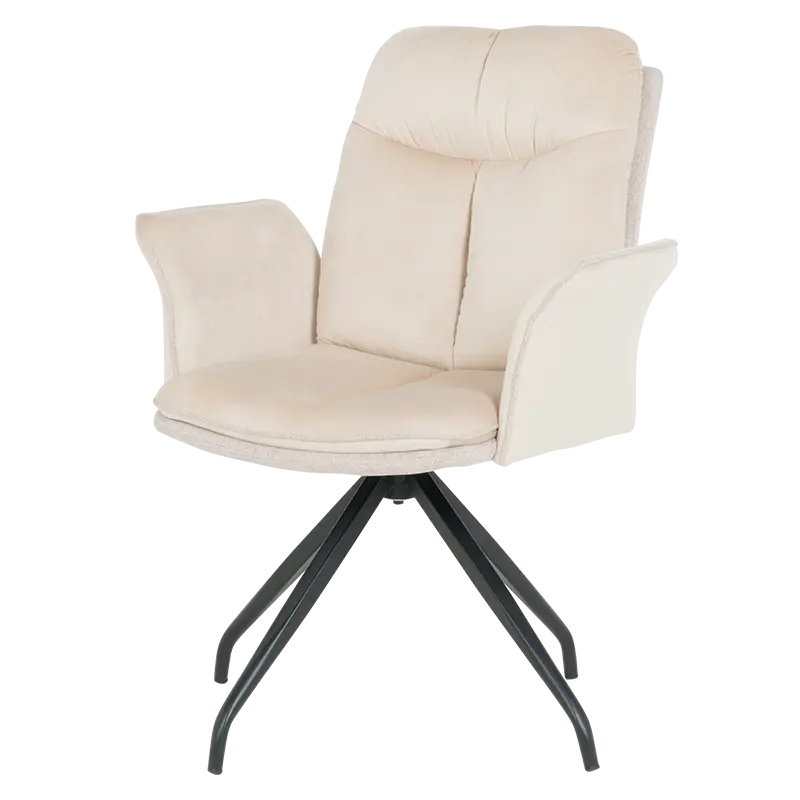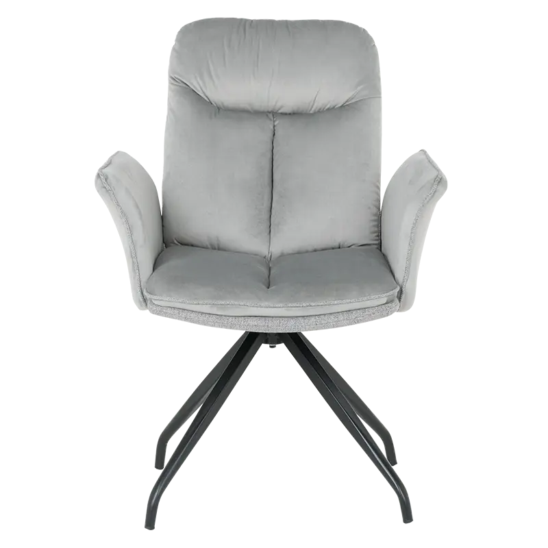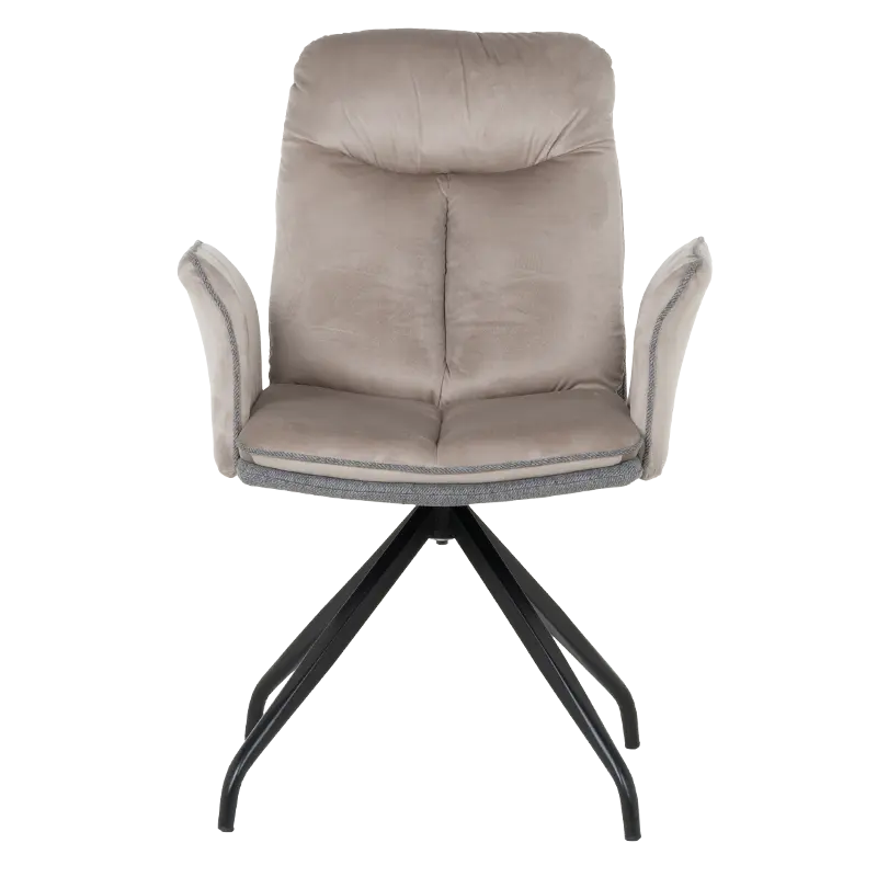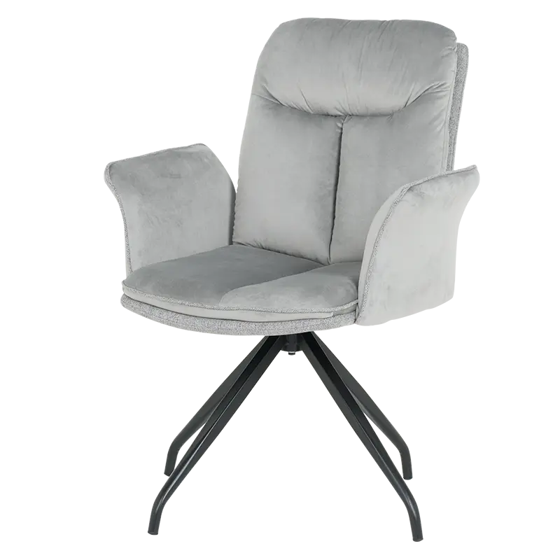 Трапезен стол КРАСЕН е трапезен стол с модерна визия. Той има широки седалка и облегалка от дамаска, с допълнителни възглавници за максимално удобство. Подлакътниците повишават комфорта на седящия. Основата е метална и има иновативна функция за 360° въртене.