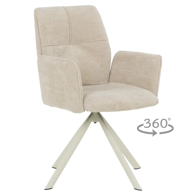 Трапезният стол ШЕЛИ е модел с интересен дизайн и функция за въртене на 360°. Изработен е от дамаска и крака от праховобоядисан метал. Моделът разполага и с подлакътници, които освен че завършват визията му, му придават и допълнителен комфорт. Стилен, оригинален и удобен, той подхожда на интериора на съвременния дом, както и на модерни и изискани ресторанти.