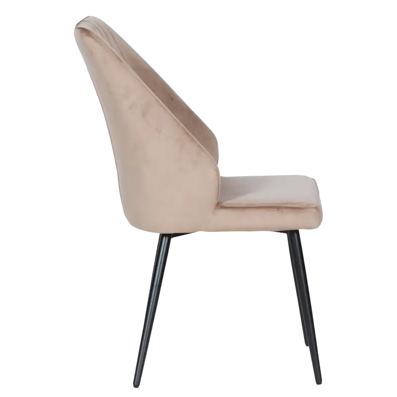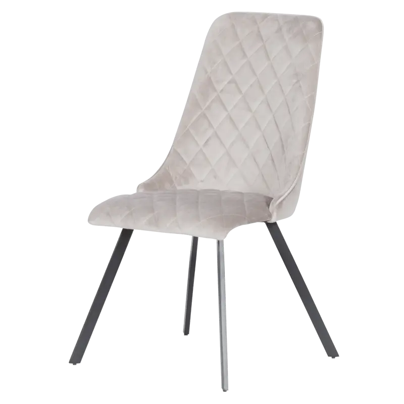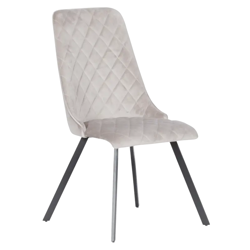 Трапезен стол ВЕЛИЗАР е модерен трапезен стол с изчистена и стилна визия. За изработката на модела е използвана приятна на допир дамаска и праховобоядисан метал за краката.