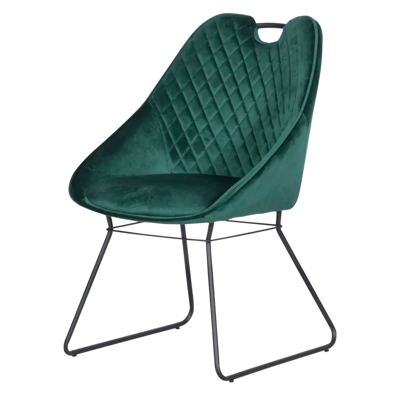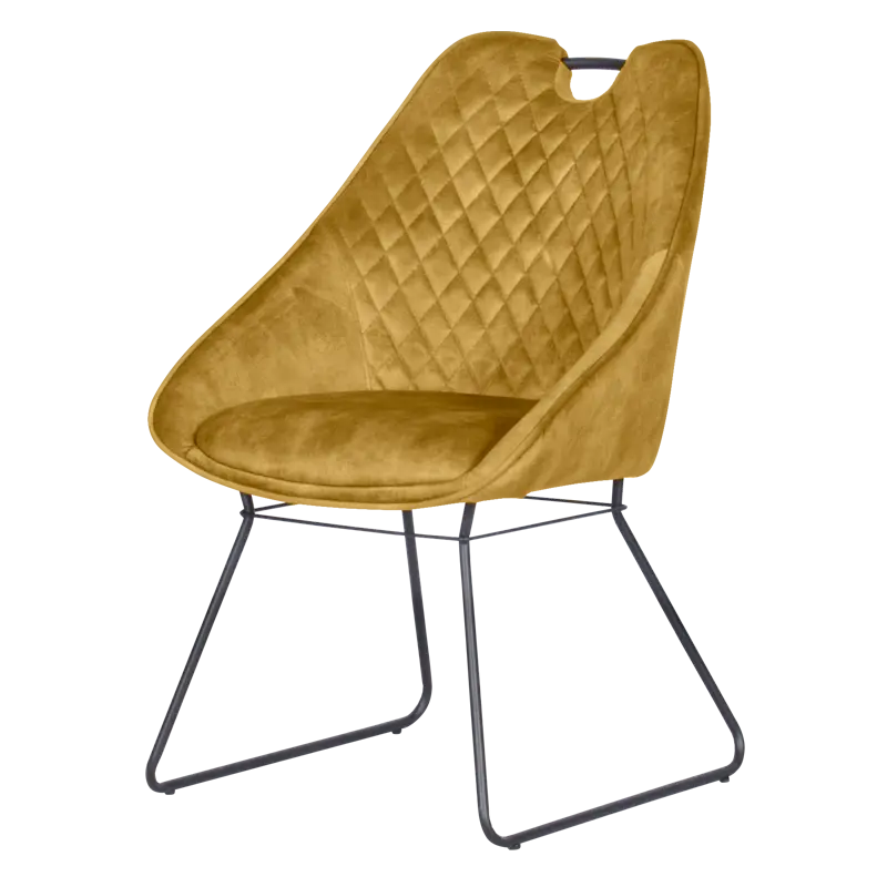 ЖЕЛАНА е удобен трапезен стол с модерна визия. Моделът е с нестандартен и оригинален дизайн, за изработката на който е използвана висококачествена дамаска и праховобоядисан метал.