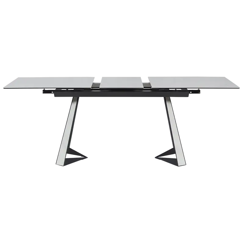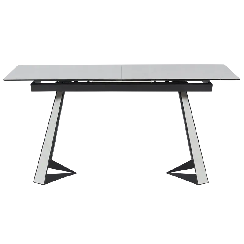 Разтегателната трапезна маса АЛФОНСО притежава елегантен и стилен дизайн. За изработката и са използвани висок клас материали – керамика, закалено стъкло и праховобоядисан метал. Плотът на масата е с ширина 90 см и дължина 160 см и 200 см в разтегнато положение.
