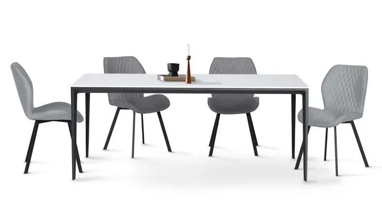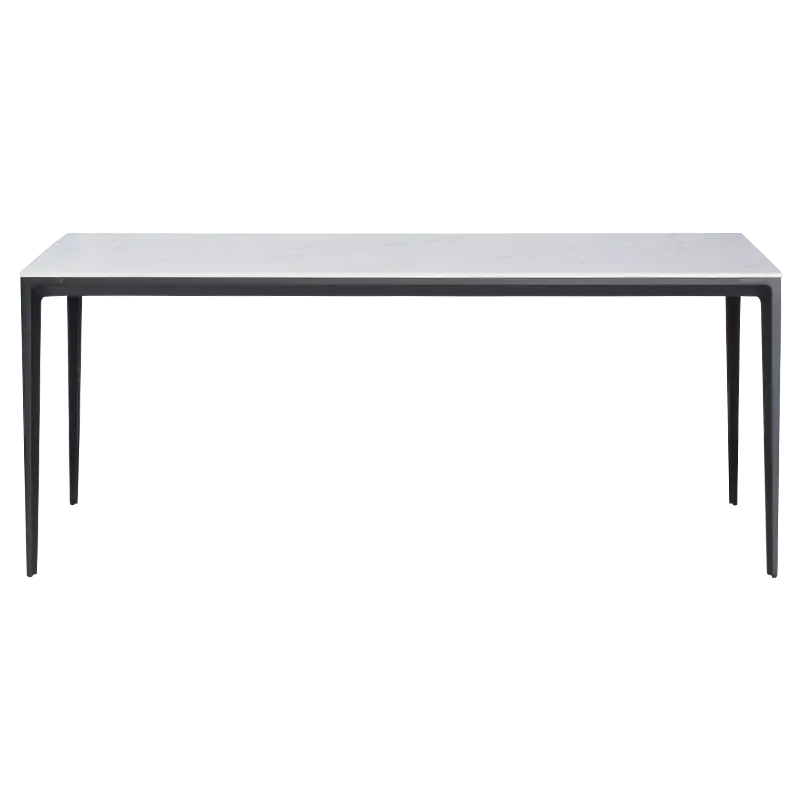 Трапезна маса ДАМЯН се отличава с изчистен дизайн. Правоъгълният плот с размери 180 см x 90 см има специално покритие, което го защитава от надраскване, влага и UV лъчи. Това позволява използването на модела и на открито. Праховобоядисаните алуминиеви крака допълват визията и осигуряват стабилност и удобство.