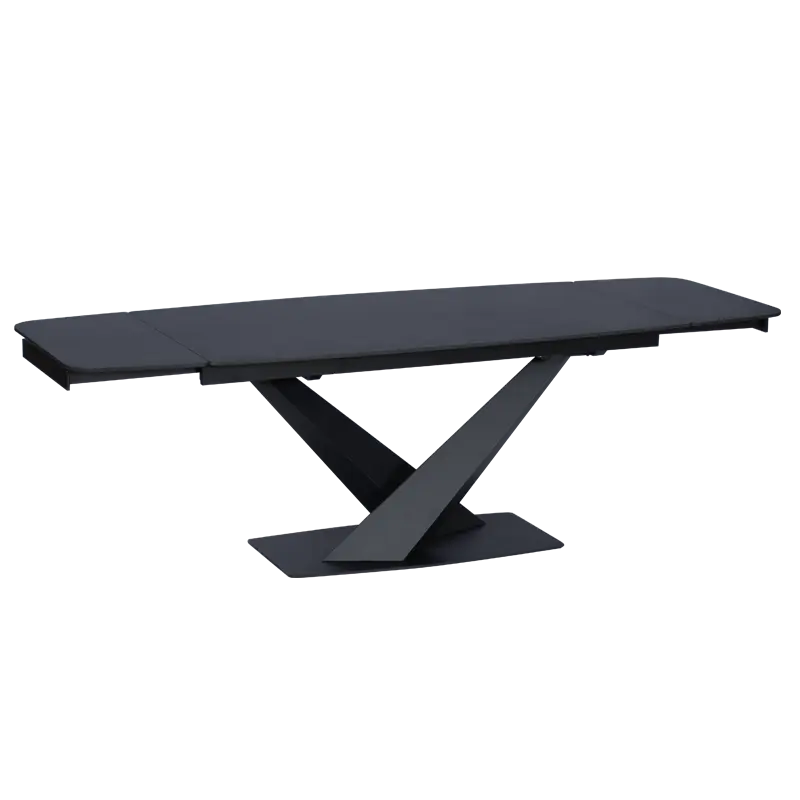 ЛЕНА е модерна и стилна трапезна маса с плот от керамика и функция за разтягане. Дизайнът на основата е разчупен и оригинален, а праховобоядисаният метал, от който е изработена, гарантира здравина и стабилност.