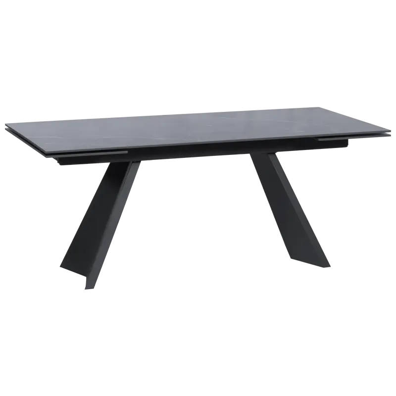 Tрапезна маса ЛЮБА разтегателна е модерна трапезна маса с интересна, стабилна основа, изработена от праховобоядисан метал. Тя е с правоъгълен керамичен плот с дебелина от 10 мм и практична функция за разтягане. Плотът се разтяга от двете страни на масата, в стандартно положение дължината му е 180 см, а след разтягане достига до 260 см, което я прави изключително удобна както за трапезария, така и за ресторанти.