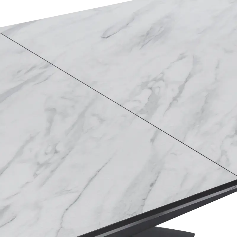 Трапезна маса МАРАЯ е модерна трапезна маса със стилна визия и нестандартни крака. Моделът е изработен от висококачествени материали и практична функция за разтягане.
