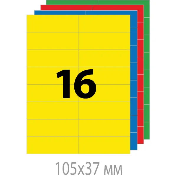 Цветни етикети 105х37 мм са самозалепващи етикети, подходящи за мастилено-струйни и лазерни принтери, както и за копирни машини. Те осигуряват ясен печат и здраво залепване върху различни повърхности.