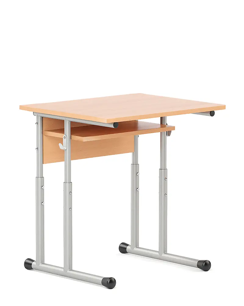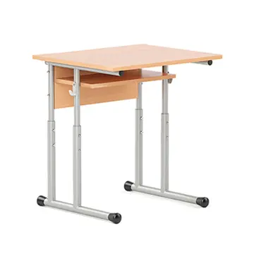Ученически чин АНА E-176 притежава механизъм за регулиране на височината в три позиции- 64, 70 и 76 см и допълнителен рафт за поставяне на учебници и лични вещи. Плоскостите са изработени от 16мм ПДЧ. Покритието на цветовете е полимерно прахово в цветове по RAL. Произведена е в България.
