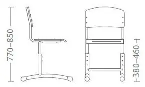 Ученическият стол АНА Е-273 сива рамка притежава механизъм за регулиране на височината в три позиции- 38, 42 и 46 см. Седалката и облегалката са изработени от 7 мм слоест бук. Покритието на цветовете е полимерно прахово в цветове по RAL.