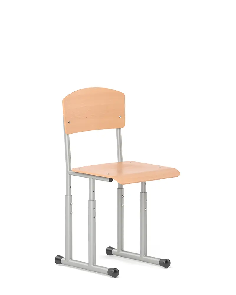 Ученическият стол АНА Е-276 сива рамка притежава механизъм за регулиране на височината в три позиции- 38, 42 и 46 см. Седалката и облегалката са изработени от 7мм слоест бук. Покритието на цветовете е полимерно прахово в цветове по RAL. Произведен е в България.