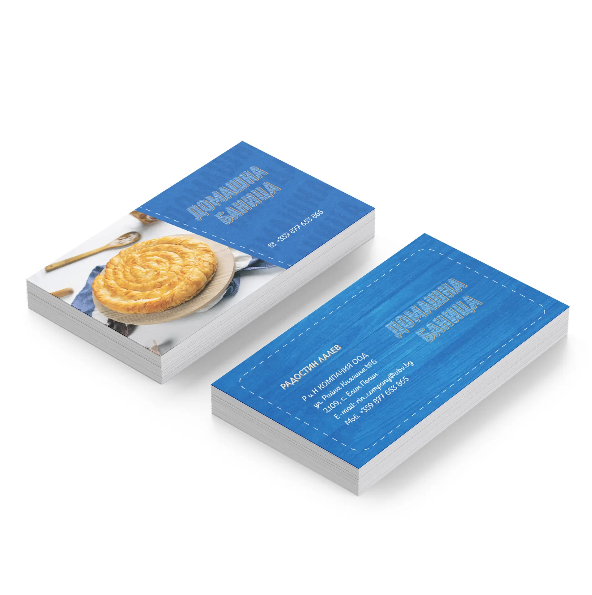 Въпреки дигиталния свят, в който живеем и все повече цифрови устройства, с които разполагаме, визитките остават важна част от фирмения, корпоративния и личния ни живот. Размяната на визитни картички, с информация за контакти е първото нещо, което правим при среща с бизнес партньори, потенциални клиенти, доставчици и други. Затова визитката е първото впечатление, което си разменяме. То е лицето на нашия бизнес и именно визитката загатва за корпоративната идентичност и авторитета на бизнеса ни или услугите, които предлагаме. Двустранните визитни картички ламинат се изработват по индивидуален дизайн и без заплащане за предпечатна подготовка.