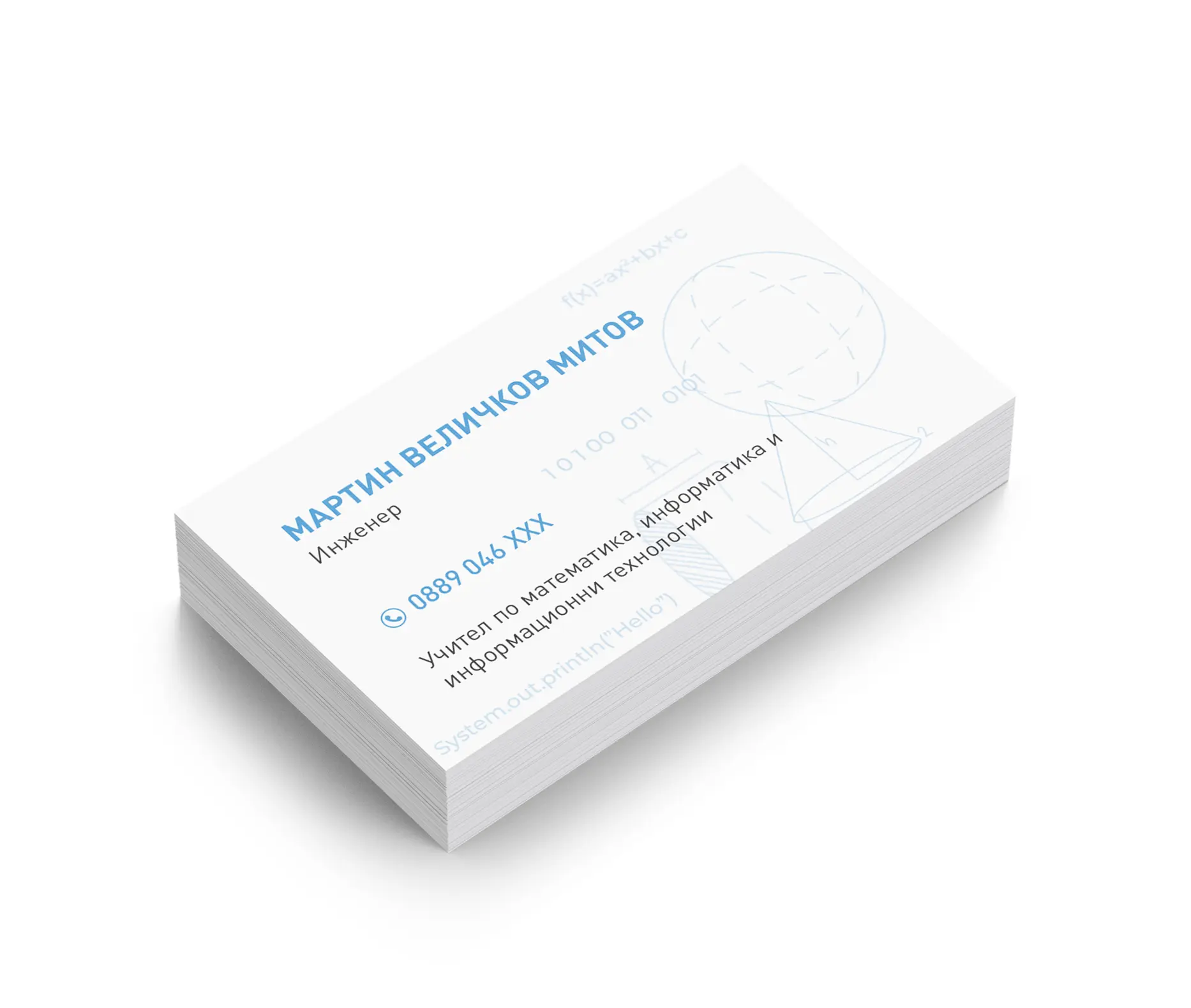 Въпреки дигиталния свят, в който живеем и все повече цифрови устройства, с които разполагаме, визитките остават важна част от фирмения, корпоративния и личния ни живот. Размяната на визитни картички, с информация за контакти е първото нещо, което правим при среща с бизнес партньори, потенциални клиенти, доставчици и други. Затова визитката е първото впечатление, което си разменяме. То е лицето на нашия бизнес и именно визитката загатва за корпоративната идентичност и авторитета на бизнеса ни или услугите, които предлагаме. Едностранните визитни картички се изработват по индивидуален дизайн и без заплащане за предпечатна подготовка.