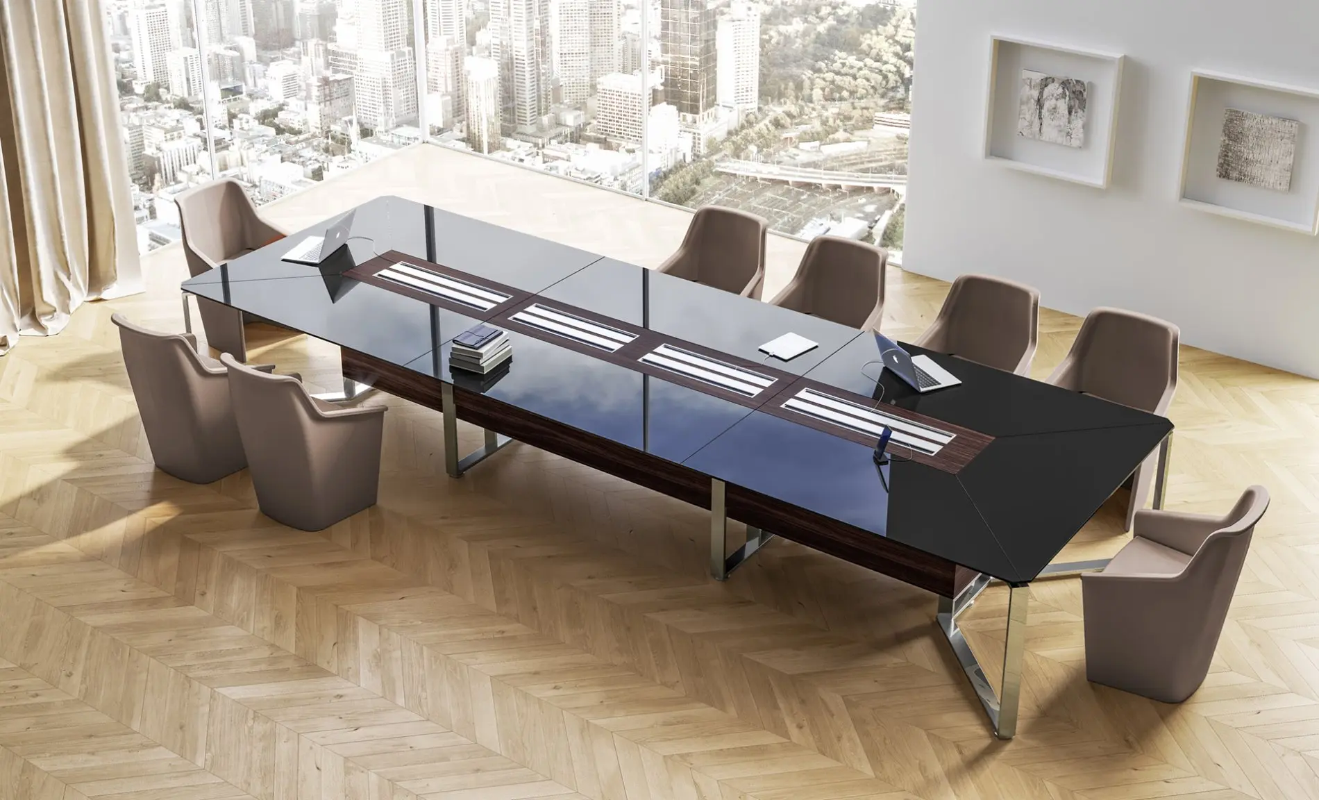 Луксозните стъклени плотове са една от най-модерните тенденции в съвременния офис интериор. Перфектно гладката стъклена повърхност създава усещането за лекота, динамичност и успех. Цветовите решения на серията се определят в съответствие със съвременните офис тенденции и се комбинират перфектно с хромираната основа на масите.