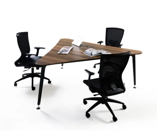 Маса LEGOLD MS с нестандартната си форма на заседателна маса, отлично заема своето място в съвременния дизайн на офис помещенията. Възможност за богат избор на цветове.