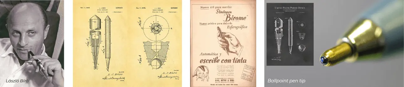 Историята започва в началото на 20-ти век, когато писането с мастилена писалка често било бавно, неудобно и, честно казано, доста цапащо. Тогава унгарският журналист Ласло Биро решава, че трябва да има по-удобен начин. Наблюдавайки как бързо изсъхва мастилото, използвано за вестникарски печат, той решава да създаде писалка, която да използва подобно мастило, но без разливане и петна.